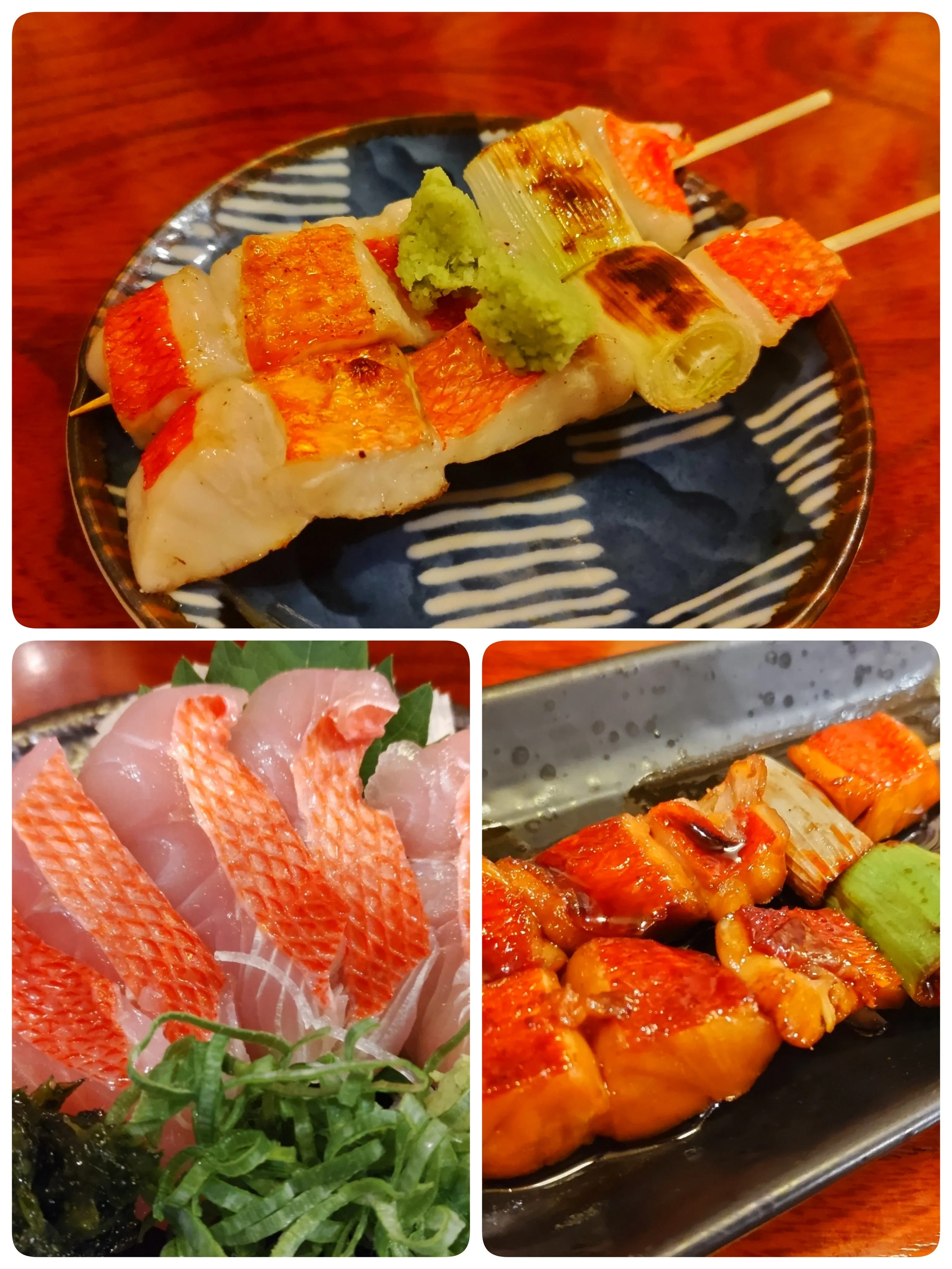 下田で金目鯛の刺身、串焼き、煮付け串。特に串焼きは絶品です。|kamekameさん