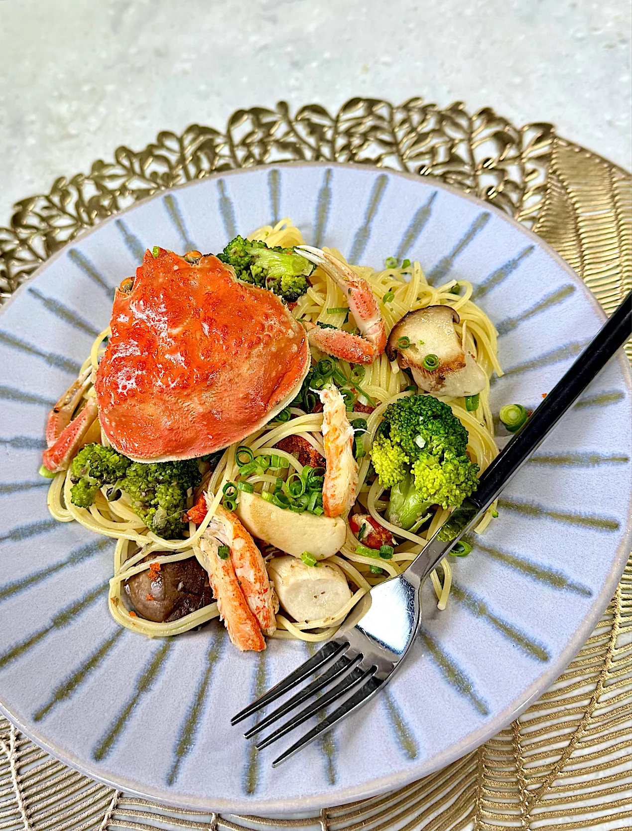 香箱蟹🦀とタップナードソースでパスタ作りました。