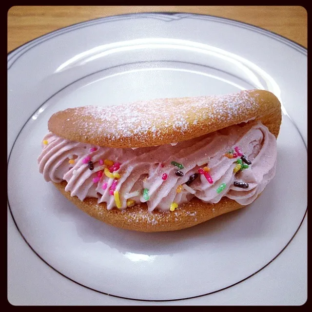 ふんわりスポンジにするために、メレンゲをしっかりたてるのがポイント☕中は生クリームたっぷりはさんで~🎵