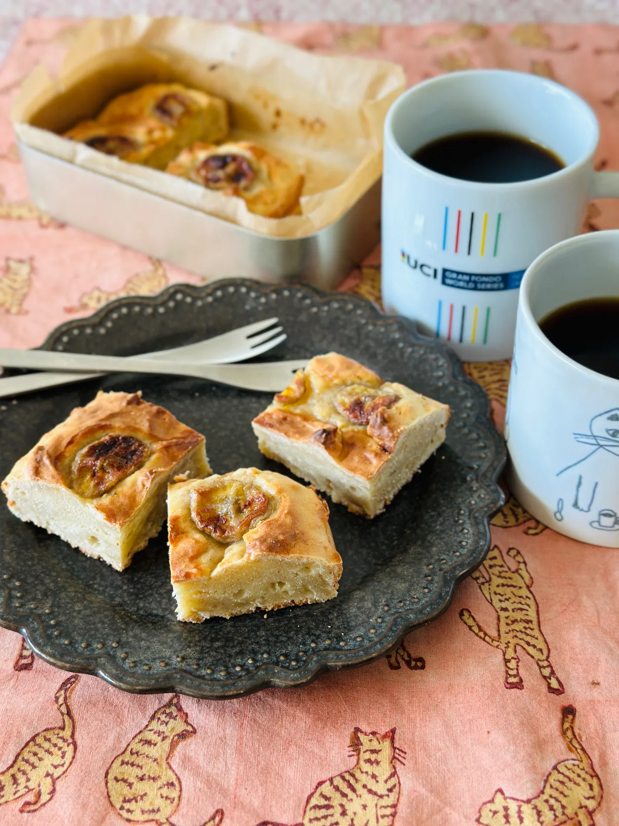 アルミの弁当箱で焼いたバナナケーキ。ちょっと失敗。分量ちゃんと計ろう。