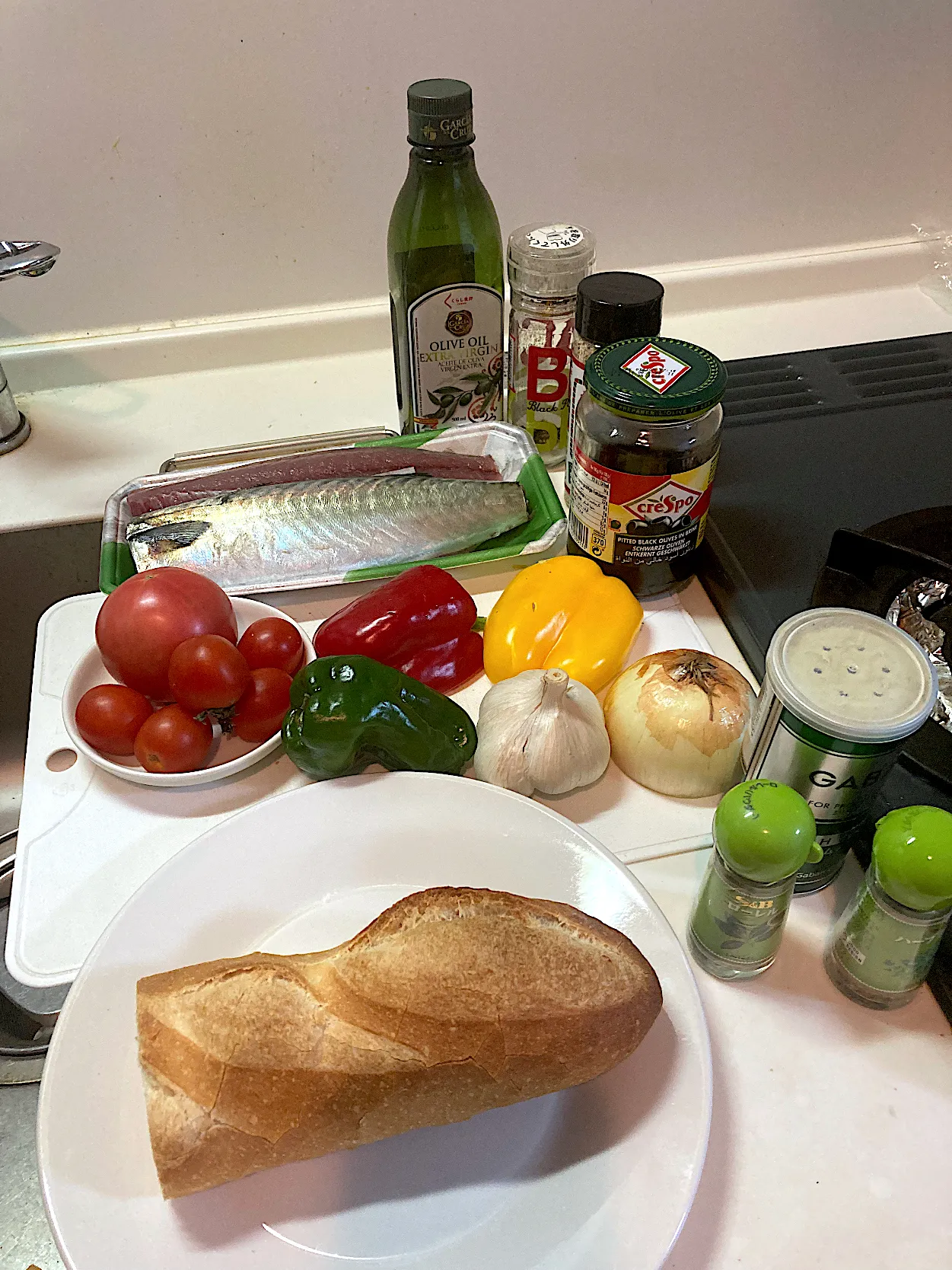 今日の晩ご飯 さばと彩り野菜のアヒージョを作ります(実況中継開始)