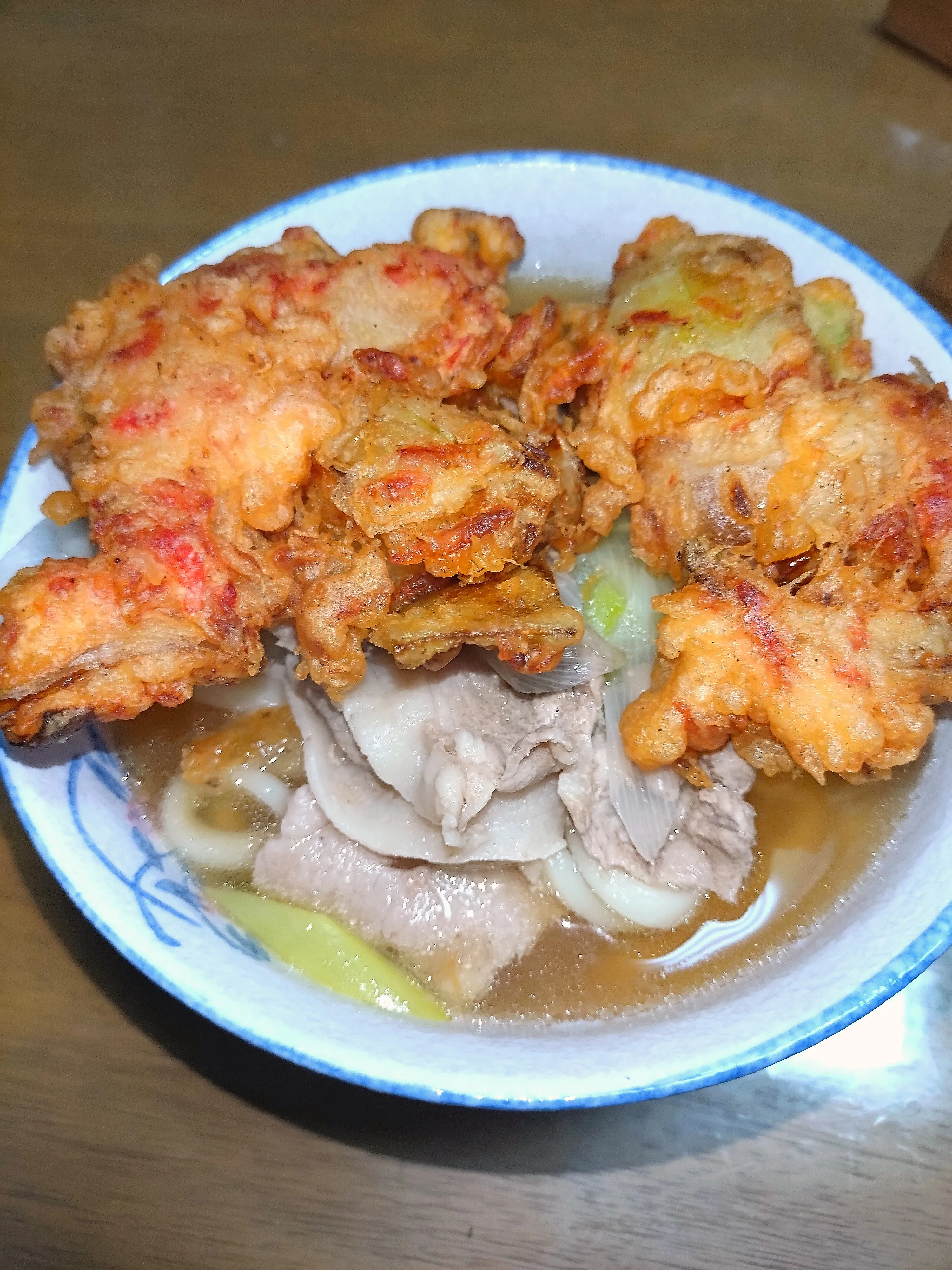 かき揚げは格安で買った干しエビに玉ねぎにブロッコリーの芯