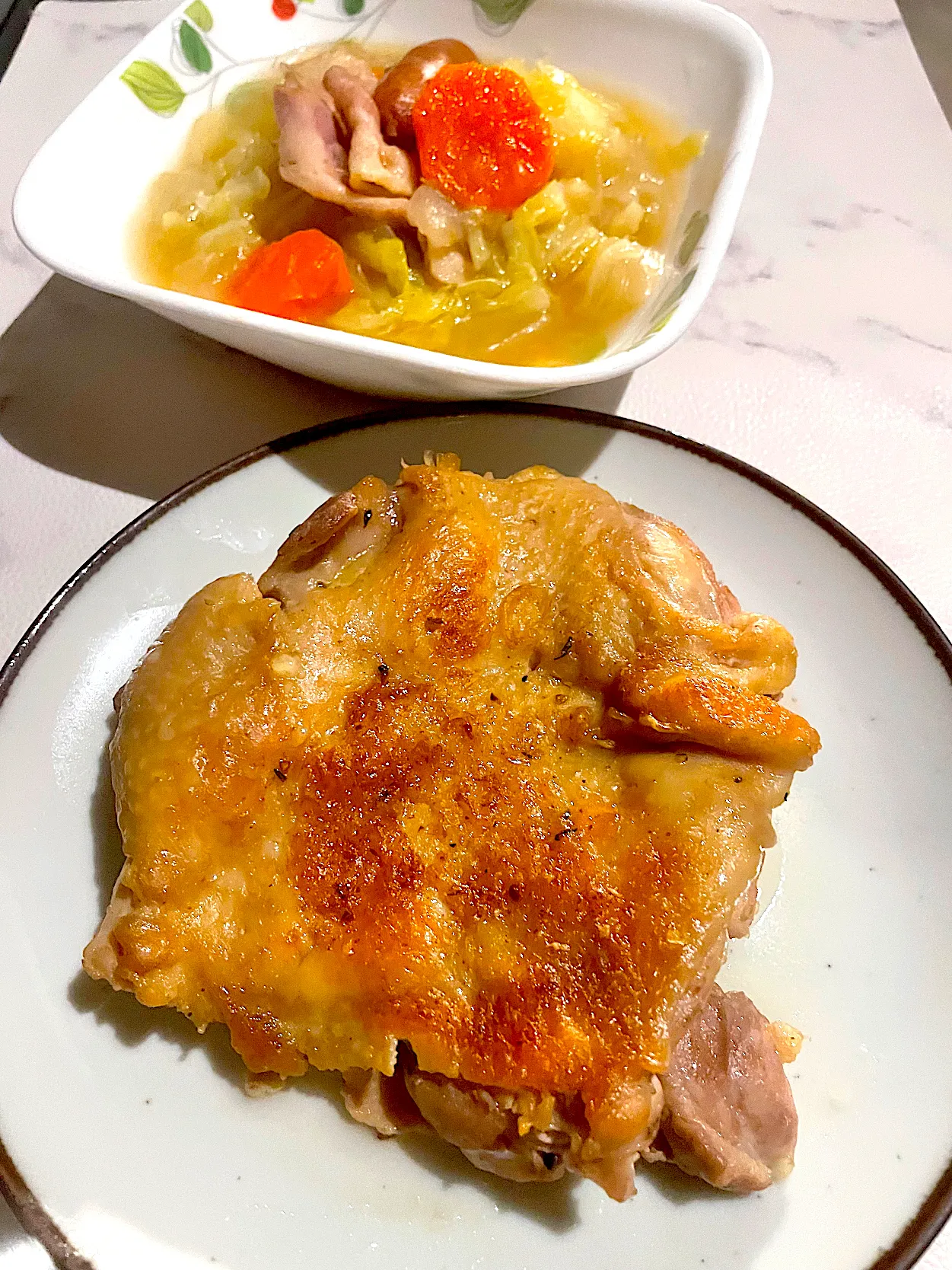 #今日の晩ごはん#チキンのハーブ岩塩焼き#ポトフ#ジムの日#私のおいしい写真