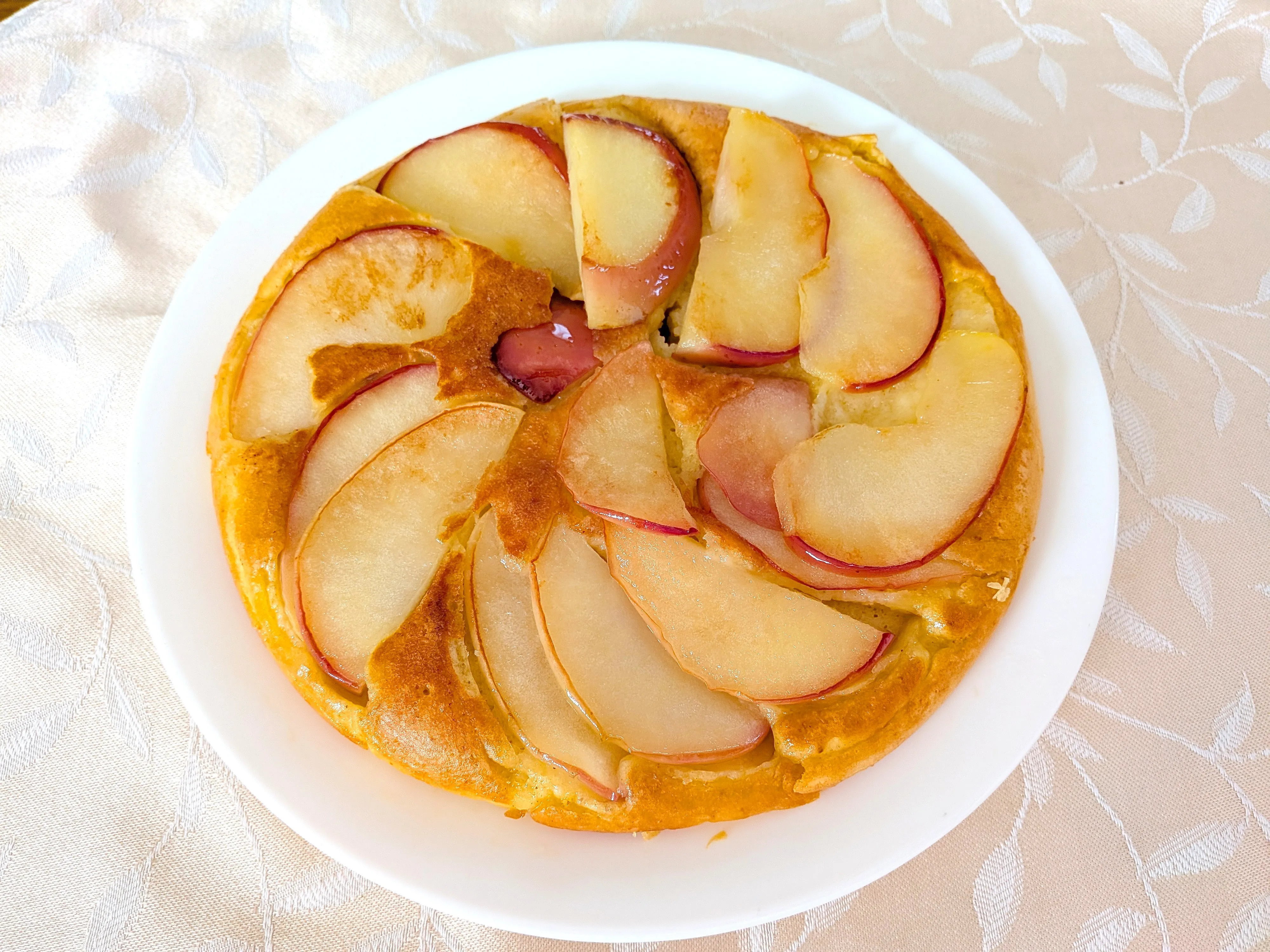 甘さ控えめで、食べる時に煮りんごとメープルシロップをかけていただきました。
