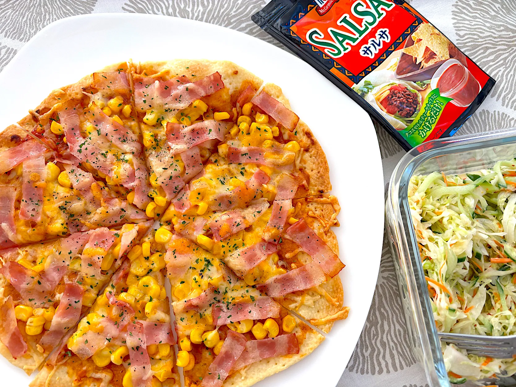 *ベーコンコーンピザ *コールスローサラダ