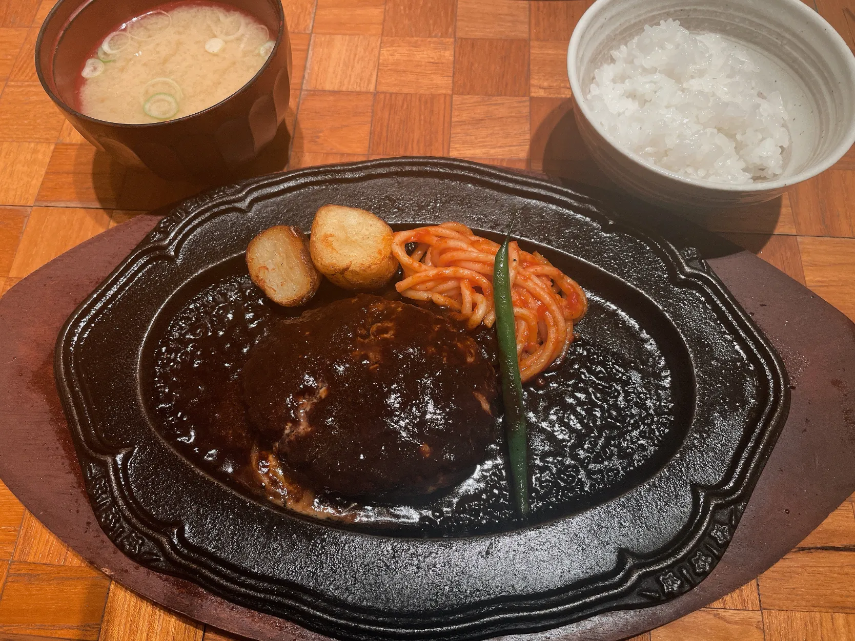 けど,ハンバーグジューシーだしご飯のおかわりもついてたからお腹満たされましたー💕