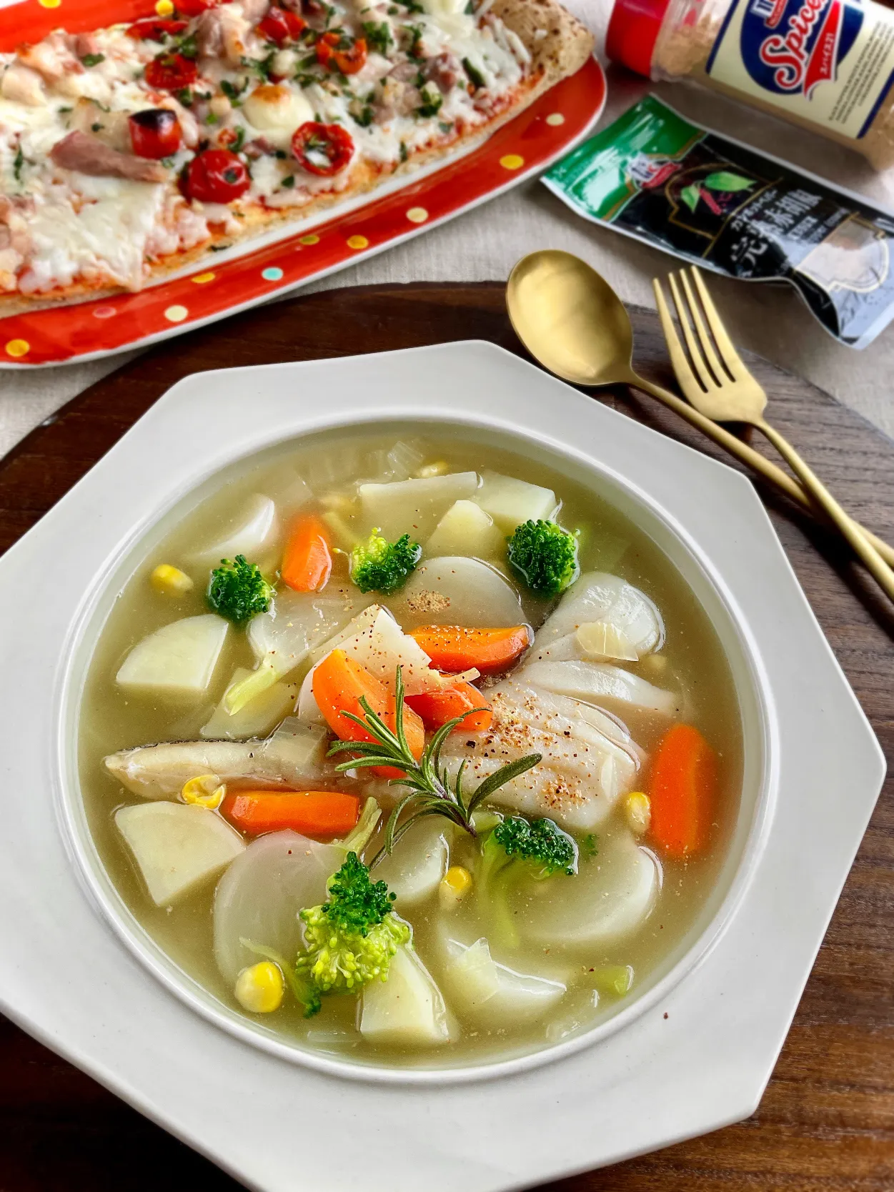 具材たっぷりで鱈とにんにくのスープ〜凄く美味しそうです😋