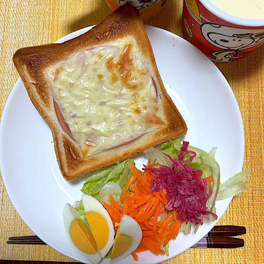 #朝ご飯 #食パン #サラダ #豆乳 #美酢活 #黒烏龍茶オレ #ヨーグルト
