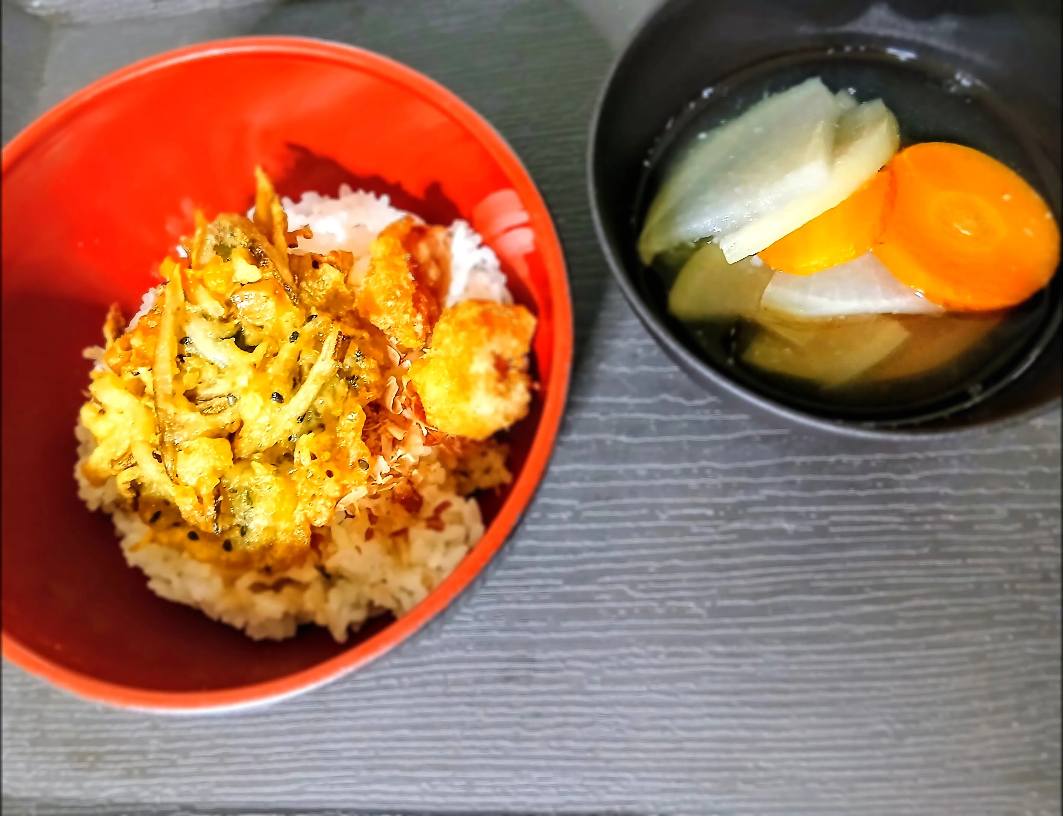 かき揚げ丼におすまし、美味しかったです😆✨