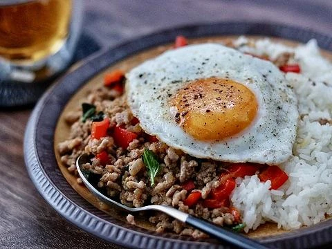 オイスターソースやナンプラーなど複数の調味料を使って複雑な味わいを作るガパオライスを、「ヤマサ 万能クッキングたれ Yummy! ガーリック&ペッパー」と「ヤマサ 万能クッキングたれ Yummy! コリアンホット」で簡単にもっと美味しく仕上げます。手軽に出来るのにご飯にからんだスパイシーな味わいがクセになる!卵を崩してまろやかにするとさらに美味しい。