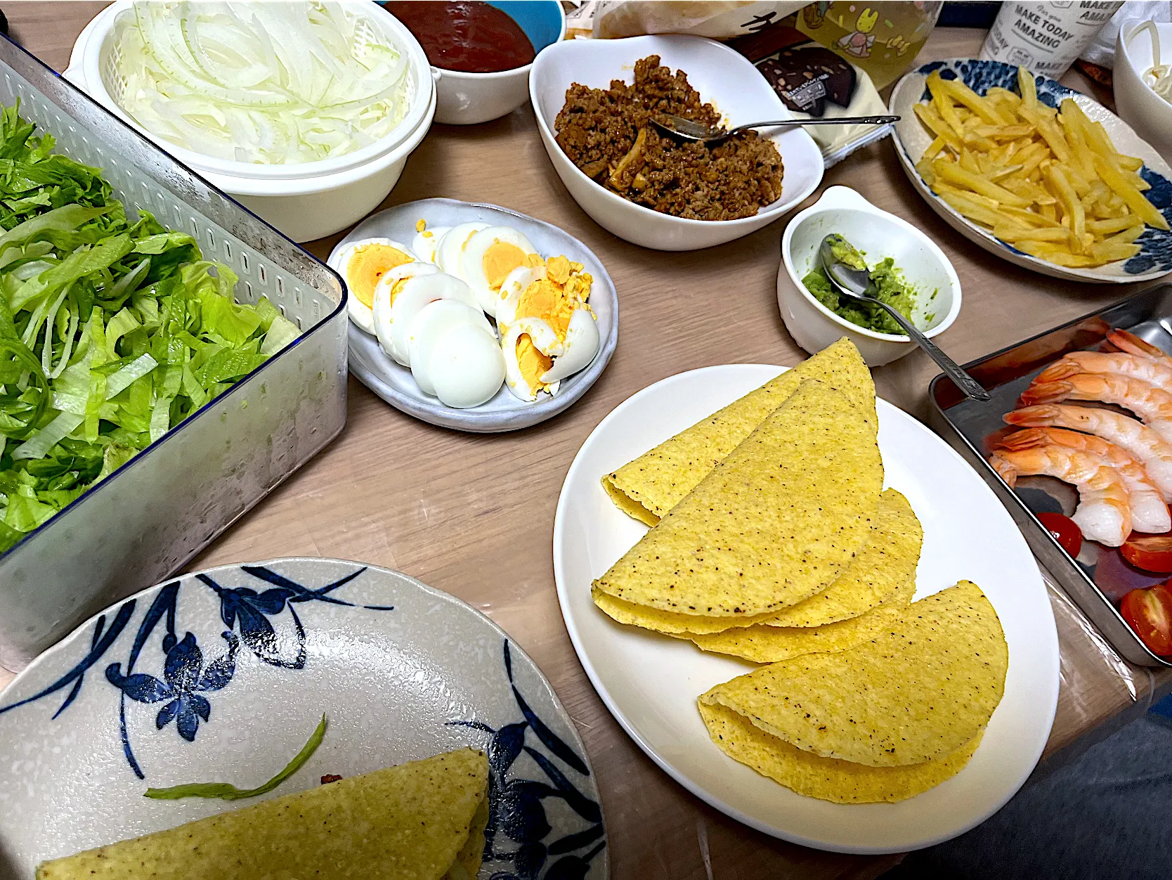 #タコス #合い挽き肉 #タマスラ #アボカド #エビ #レタス #チーズ