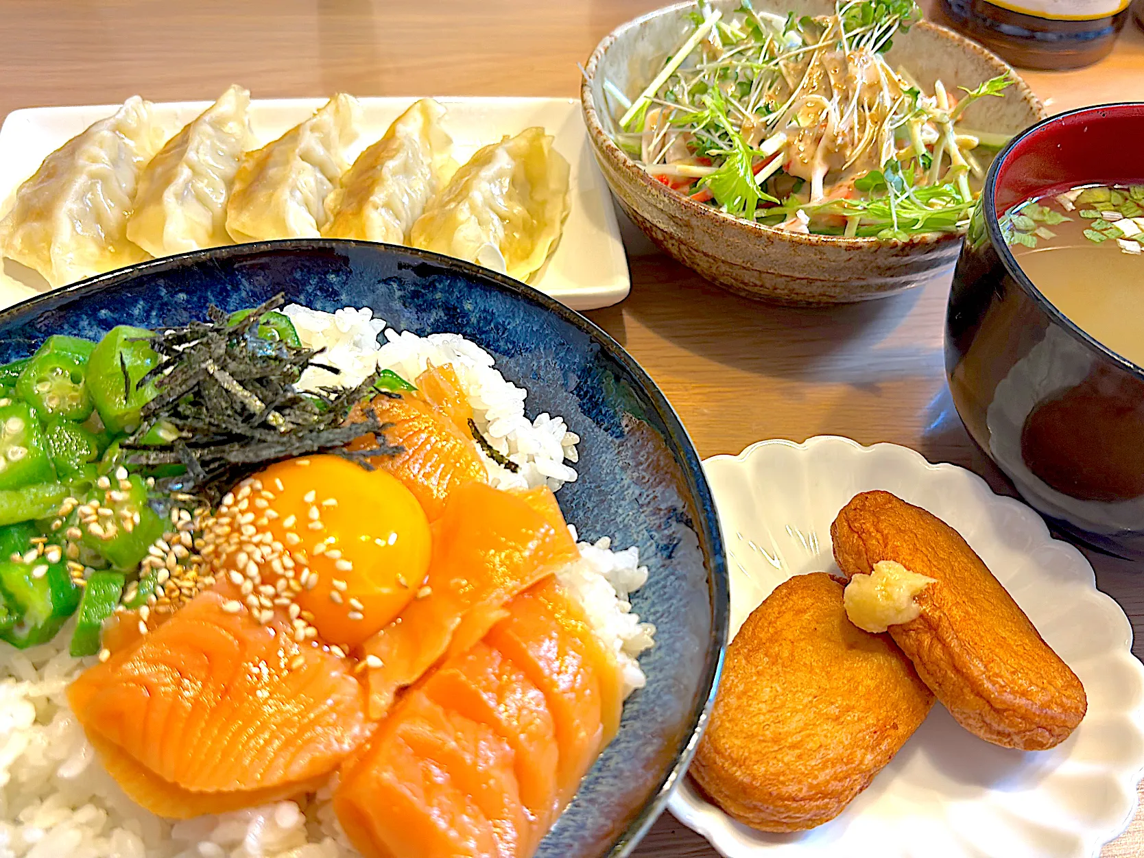サーモン丼メインの夕飯