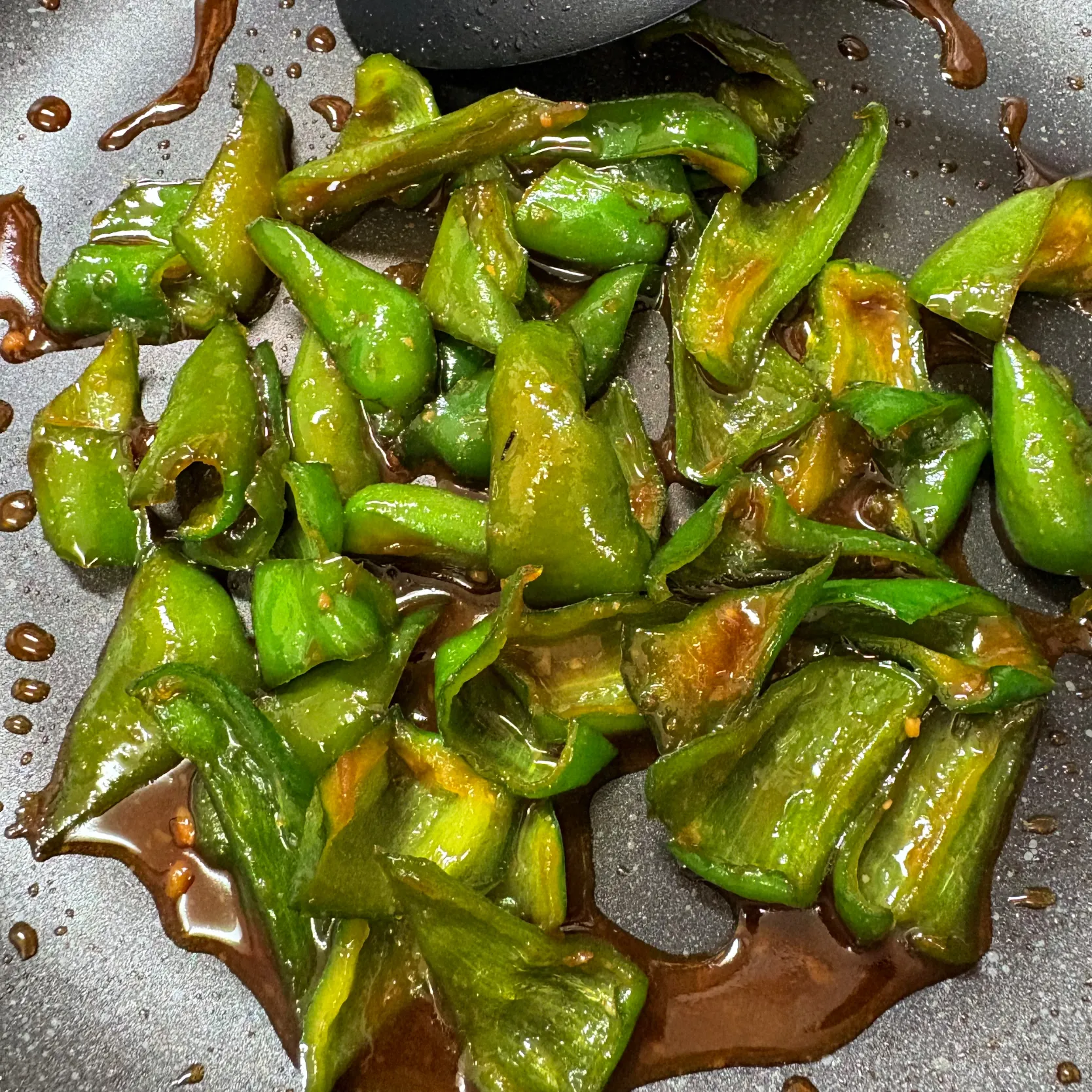 ピーマン 6個を1口サイズに切り、フライパンにサラダ油を引いて炒め、