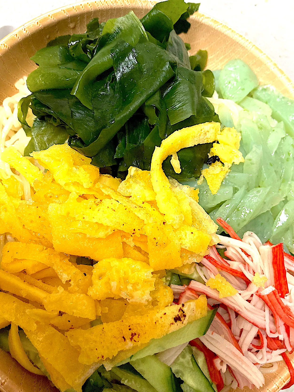 鶏皮唐揚げ梅ソースサラダ、なめ茸、ブ...