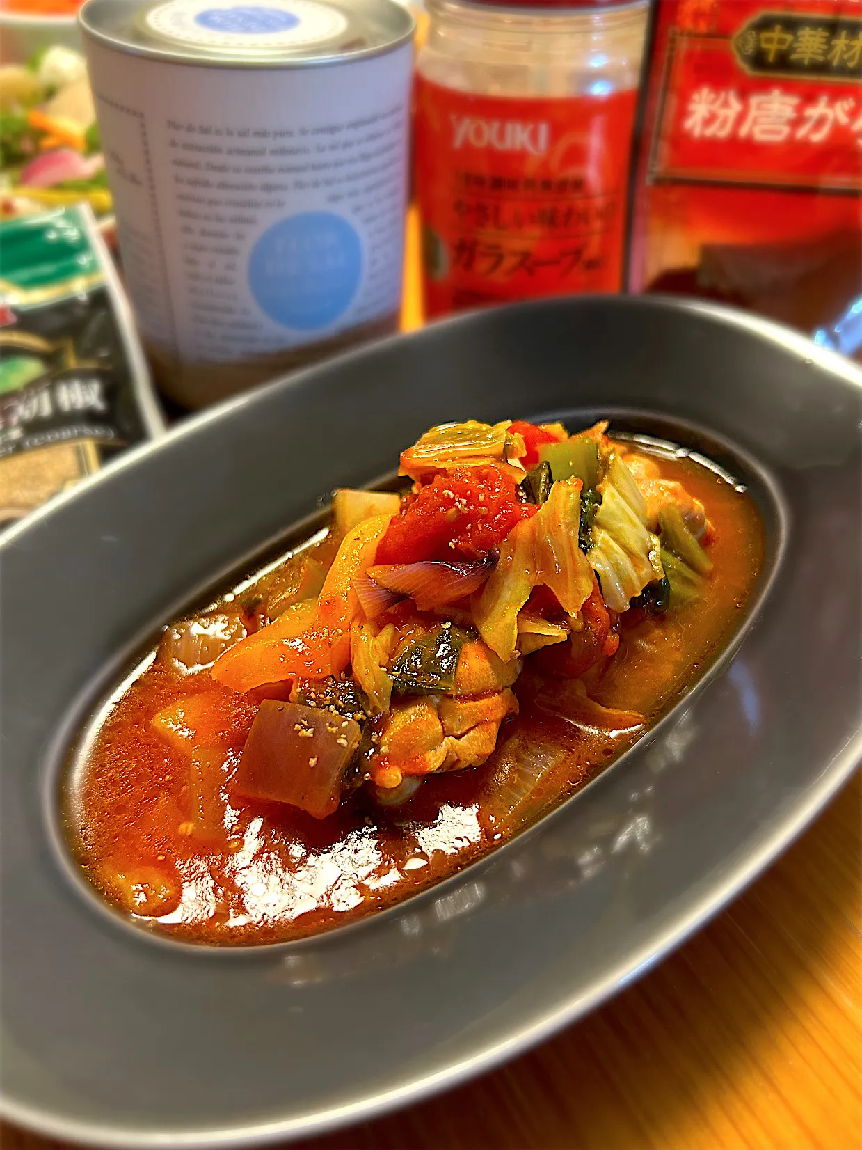 トマト煮込みはどんなお野菜が入ってもまとまってくれるから冷蔵庫の大掃除の年末向きですね🙌