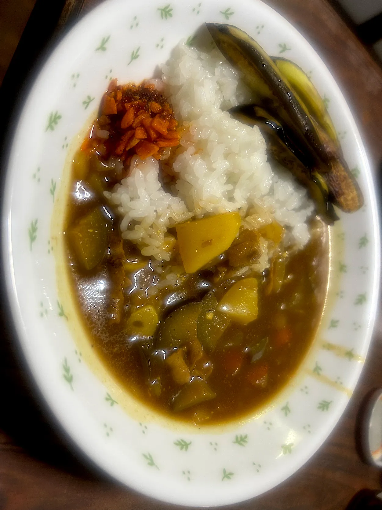 カレーライスに桃屋の食べるラー油をトッピングしました!