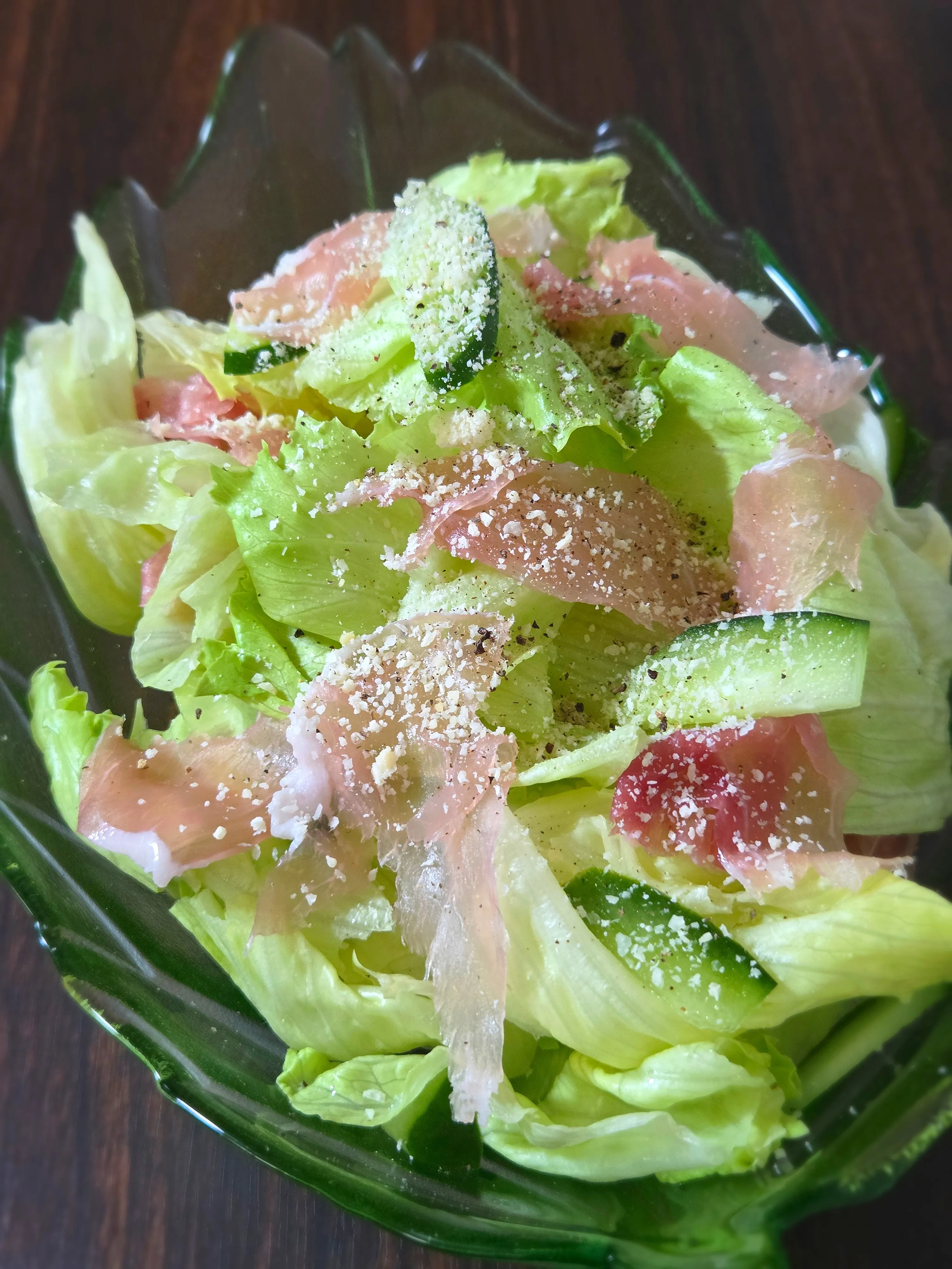 #晩ご飯 #簡単料理 #サラダ #シーザーサラダ #自家製ドレッシング #レタス #きゅうり #生ハム #粉チーズ
