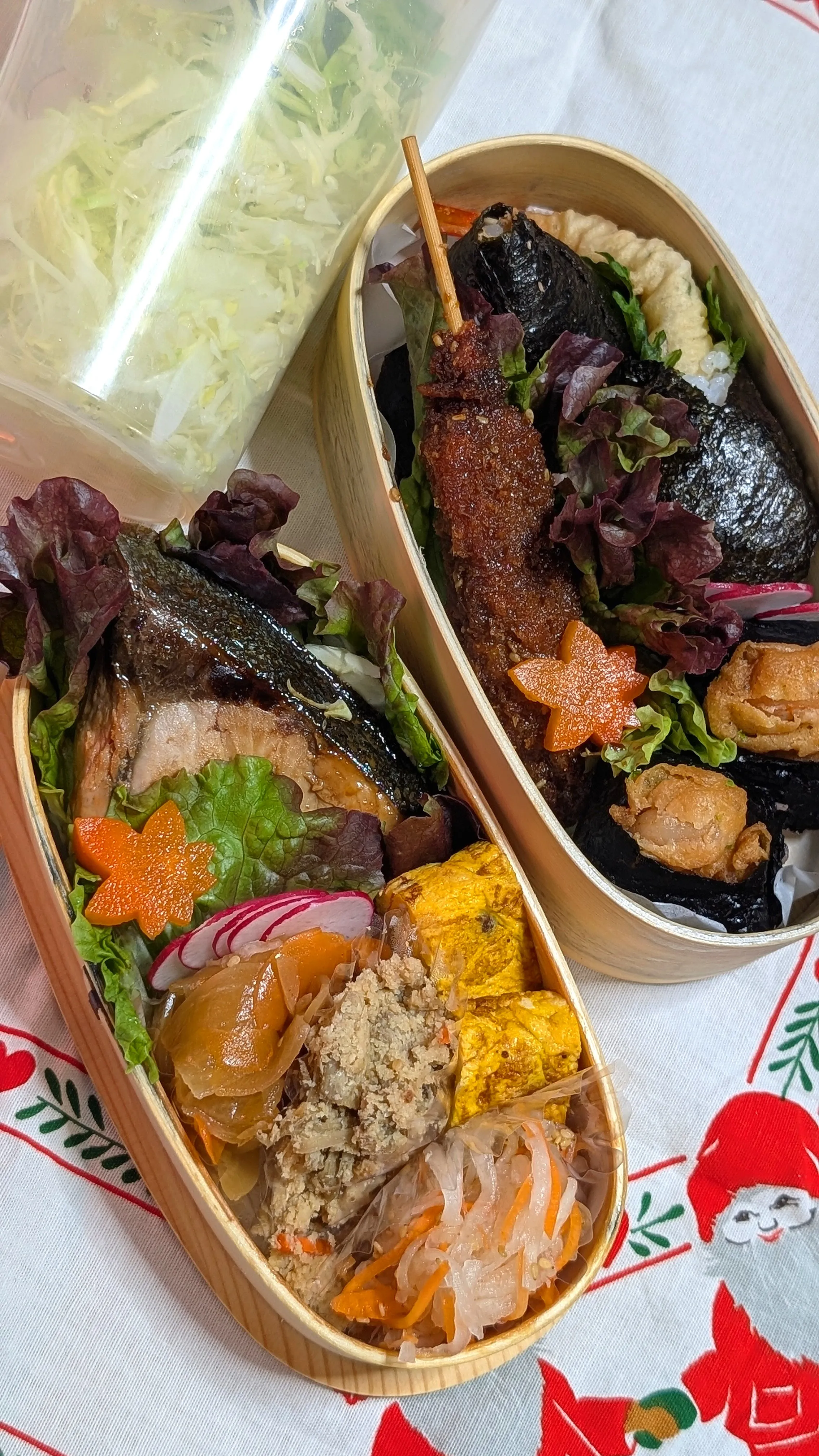 味噌かつや天むすが塩分高いと思うので、おかずの方は質素な味付けにしてます