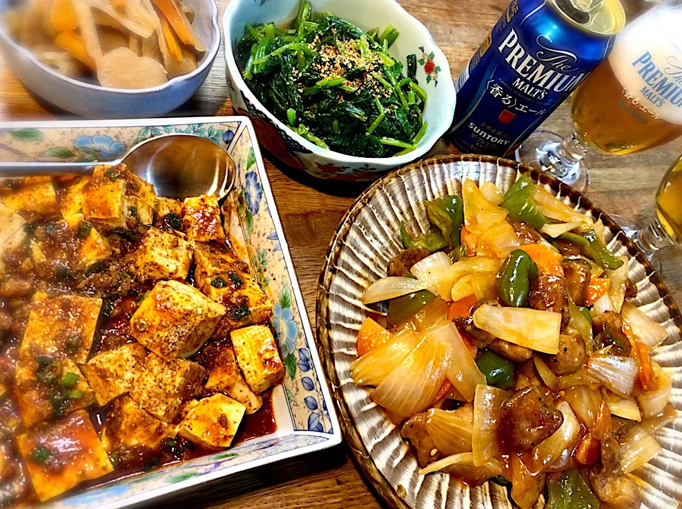 四川風麻婆豆腐 酢豚 ほうれん草のお浸し