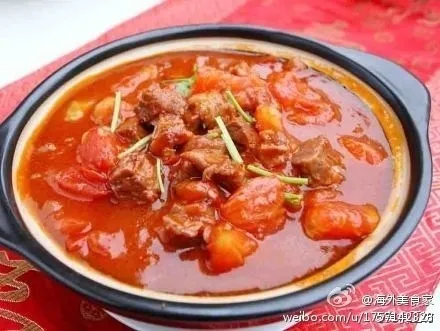 【西红柿炖牛腩】1、牛腩切成小块,清水先净。西红柿切块。香菇去蒂切片。葱切段。姜切片。 2、牛腩飞水后,清水入锅,倒入牛腩,葱段,姜片,香菇大火煮开后调成小火炖。 3、一个小时后,加入西红柿,继续再炖一个小时。 4、调入盐,再炖半小时关火。