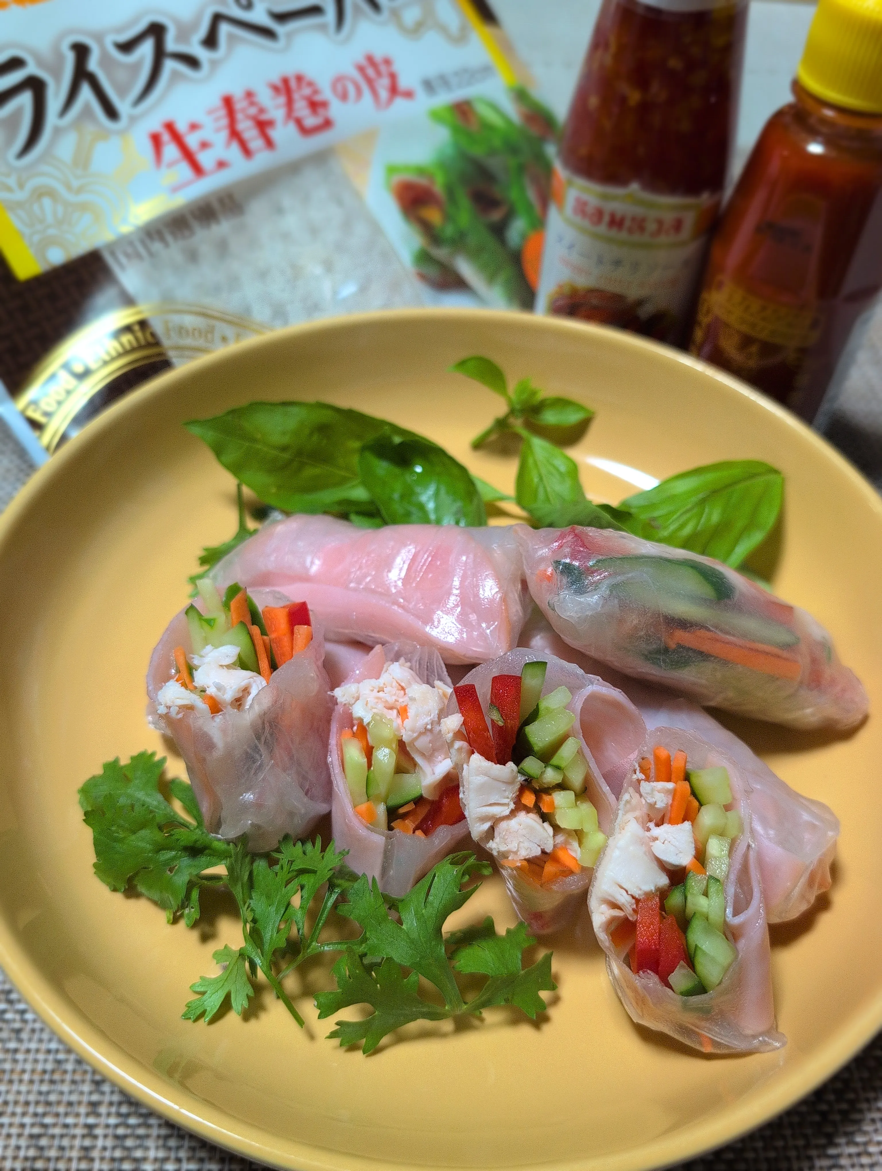 パクチーにはスイートチリソース、バジルにはシラチャーマヨネーズがよく合いました。