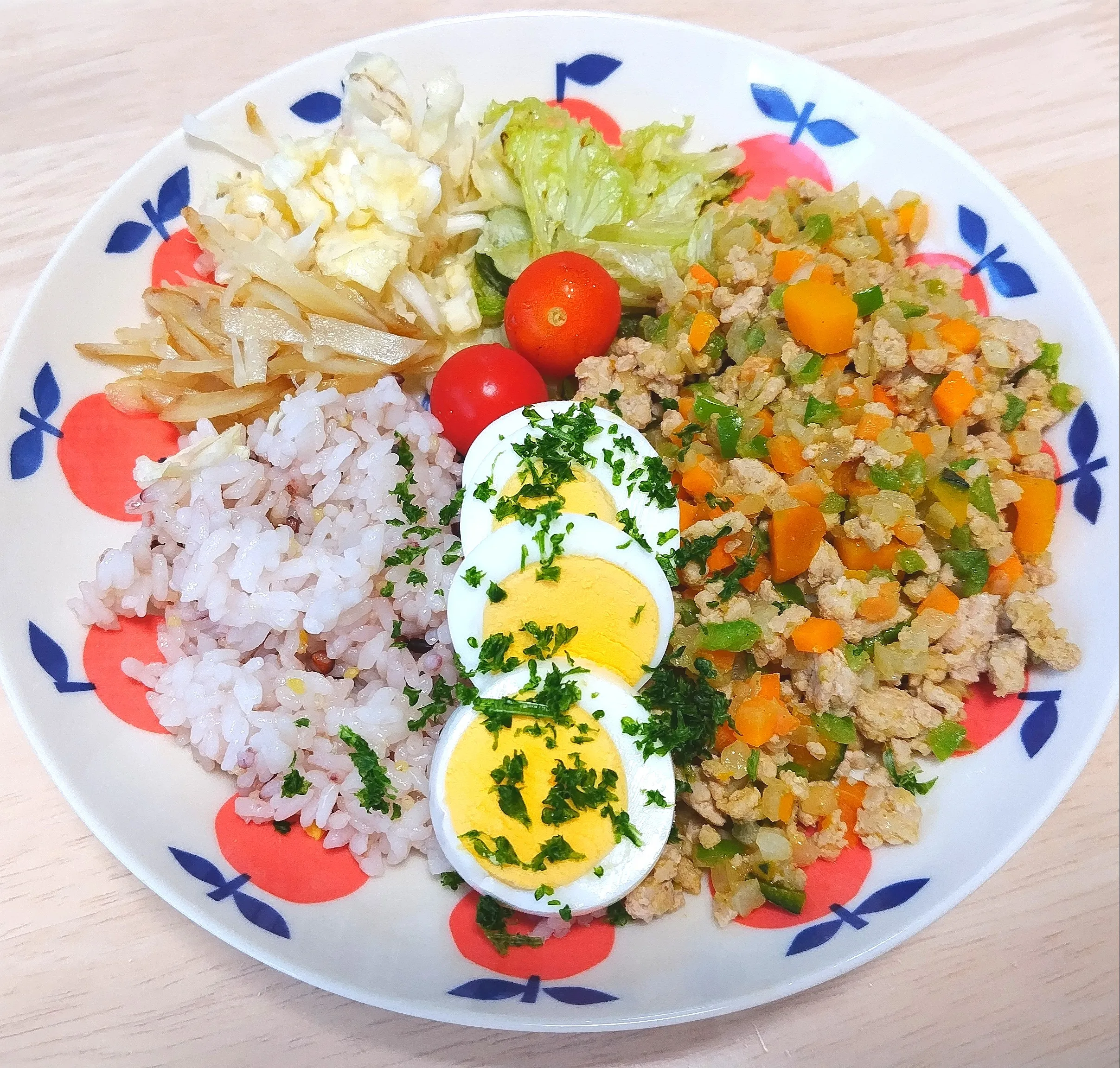 #晩御飯 #肉料理 #野菜料理 #カレー#ドライカレー#ワンプレート