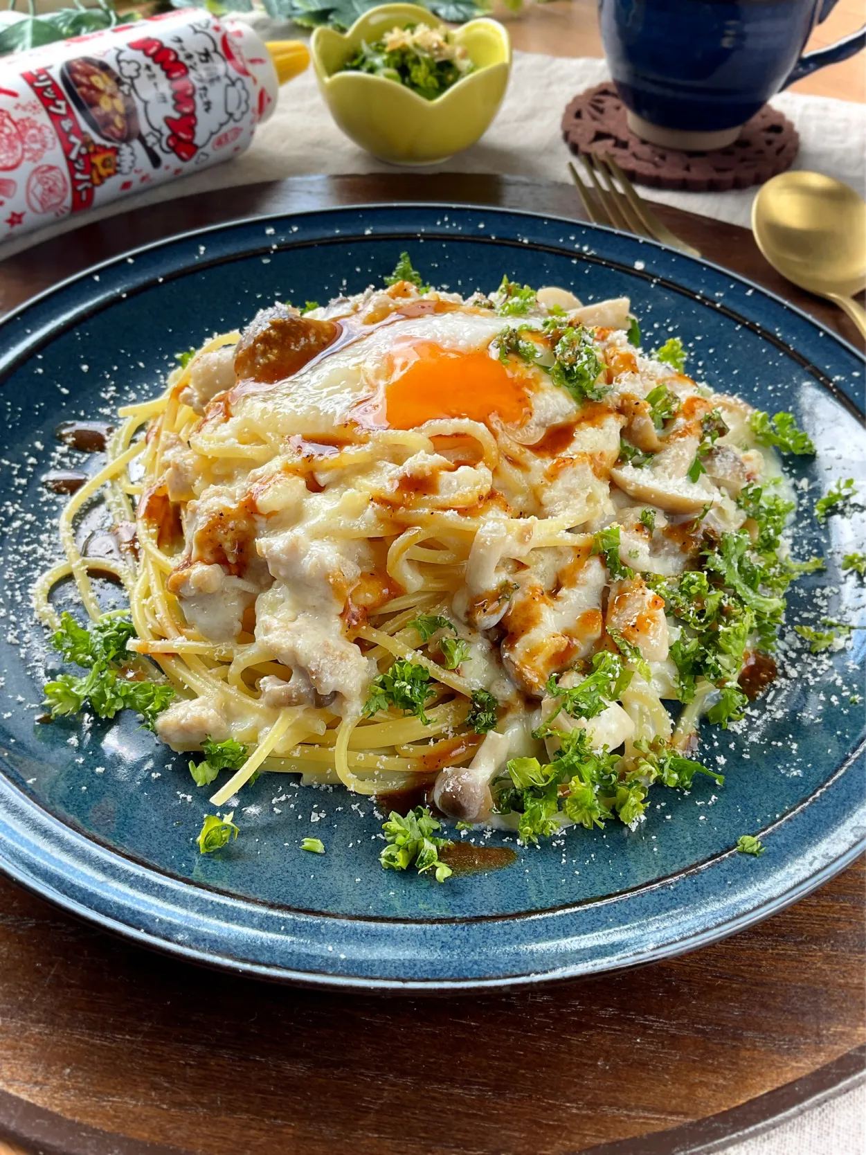 パセリの緑と白がよく映える綺麗な白いミートソース😍✨
