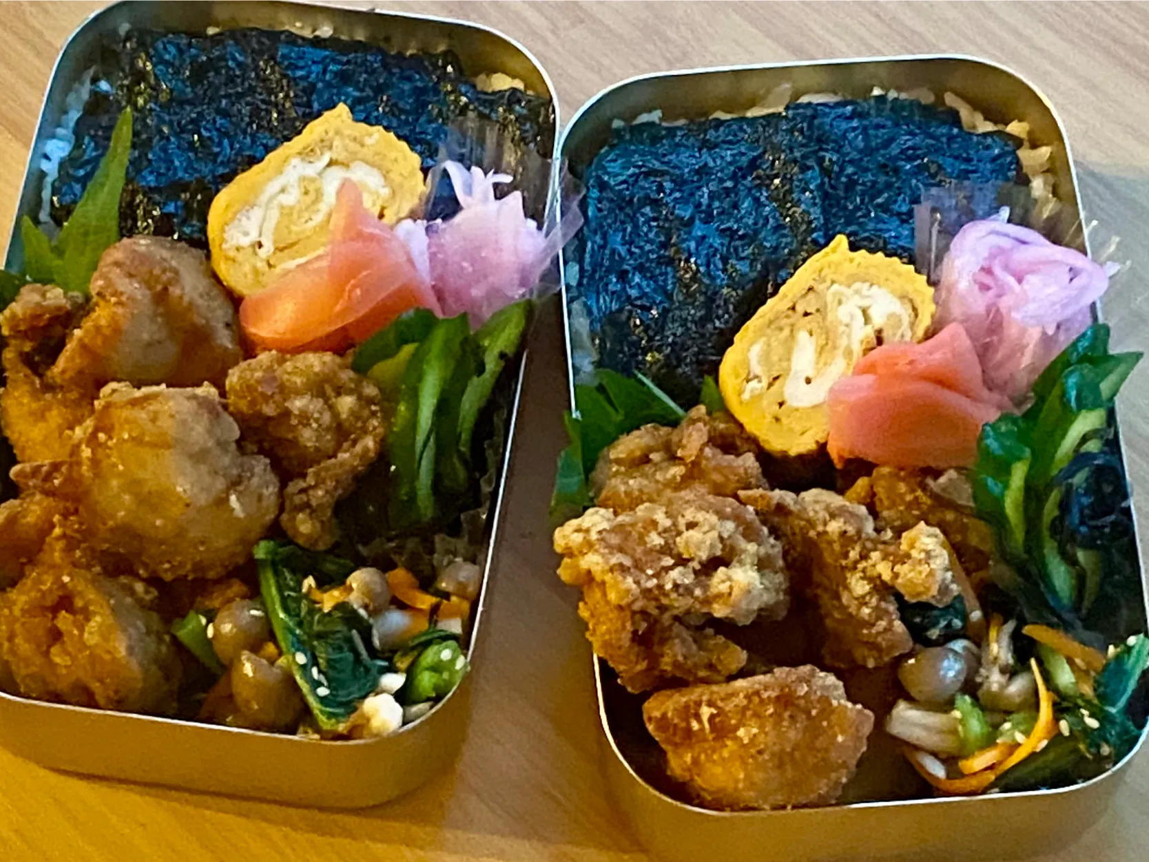#お弁当 #わが家の働く男弁当 #唐揚げ #副菜 #お弁当記録