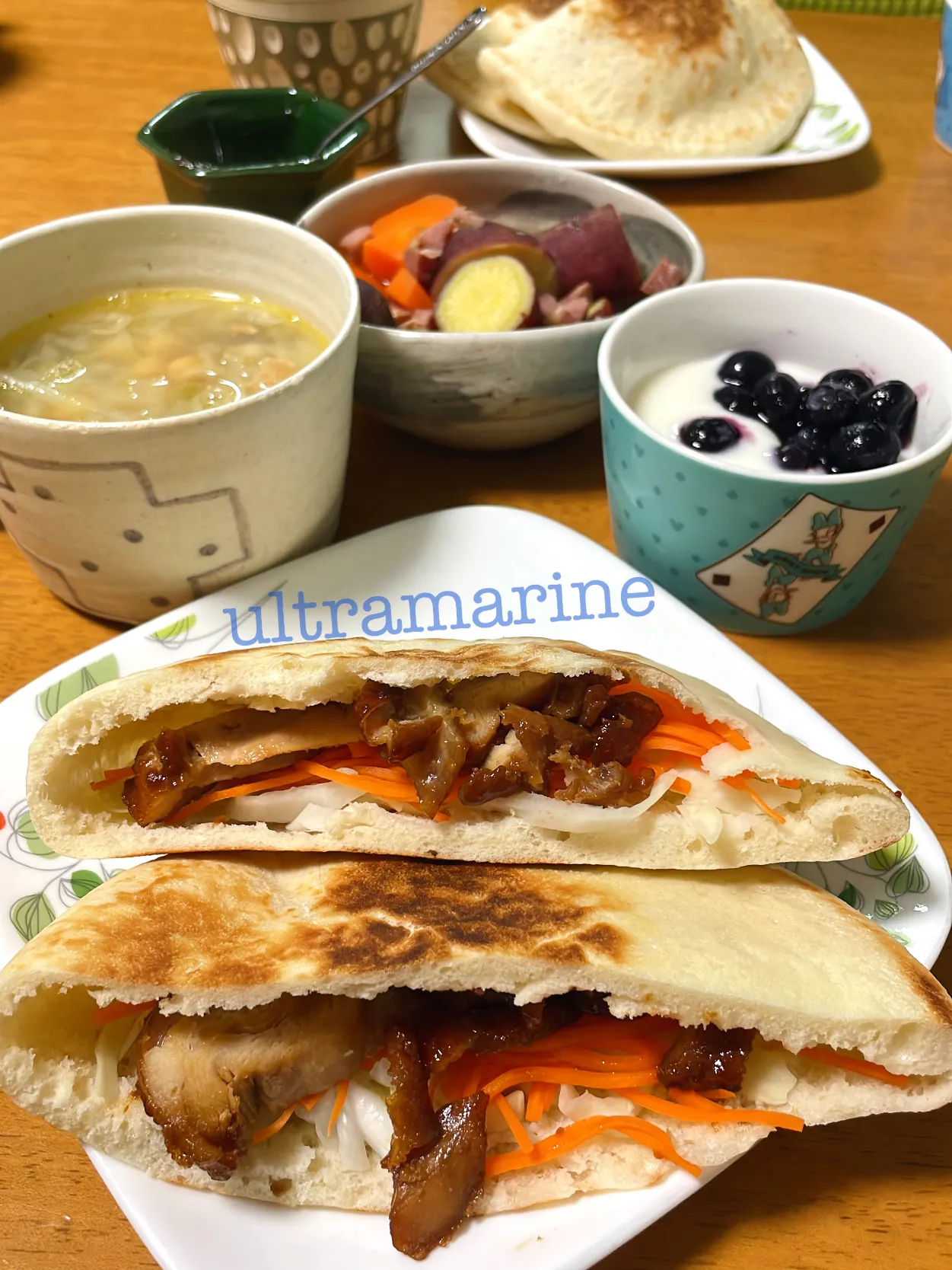 #鶏肉 #照り焼き #醤油麹 #麹 #にんじん #甘酢 #ブルーベリー #ヨーグルト #白菜 #スープ #さつまいも #にんじん #ベーコン #ミックスビーンズ #朝食 #朝ごはん #朝ご飯