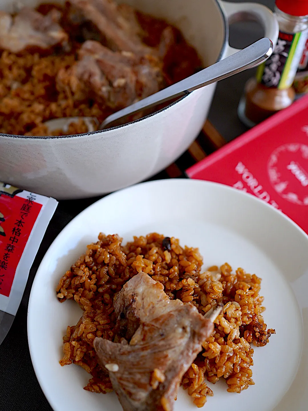 今回は醤油麹と豆豉醬でスペアリブをつけて、ごはんに炊き込んだので、醤油は入れずに。