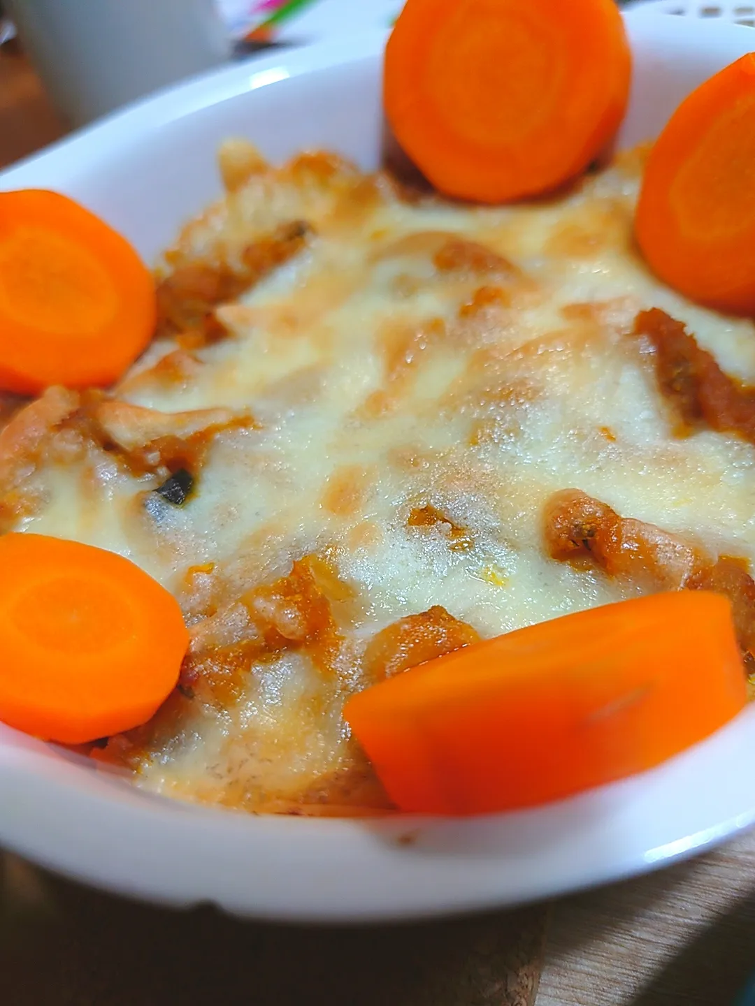 チーズを乗せてトースターで焼いての、お手軽グラタンです。