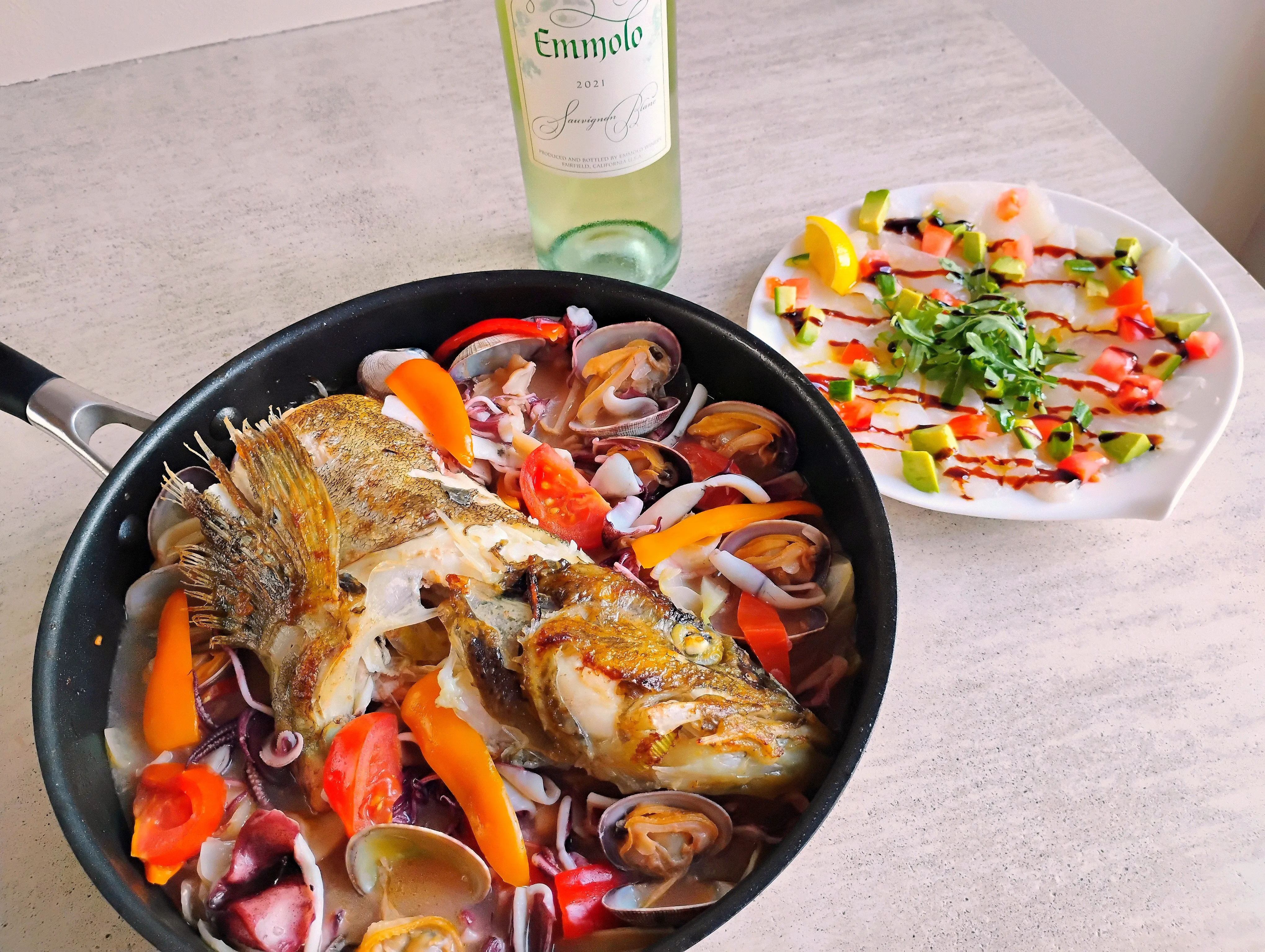 2025.05.10#アクアパッツァ #カルパッチョ#釣り魚 #白ワイン #アイナメ #ソイ