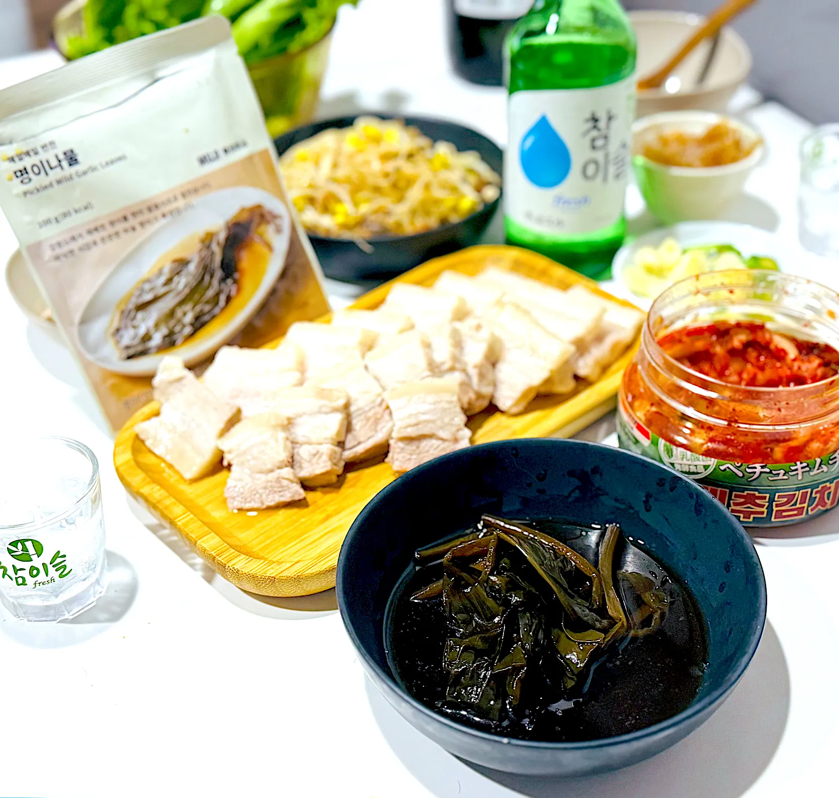 韓国のお土産で頂いた無印良品のニンニクの葉の漬物で茹で豚しました #無印良品 #ポッサム #キムチ #行者ニンニク