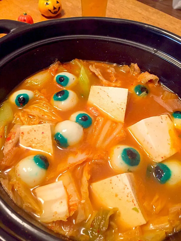 気持ち悪いですよね〜😱目玉は白玉です😝キムチ鍋に白玉、結構合います!