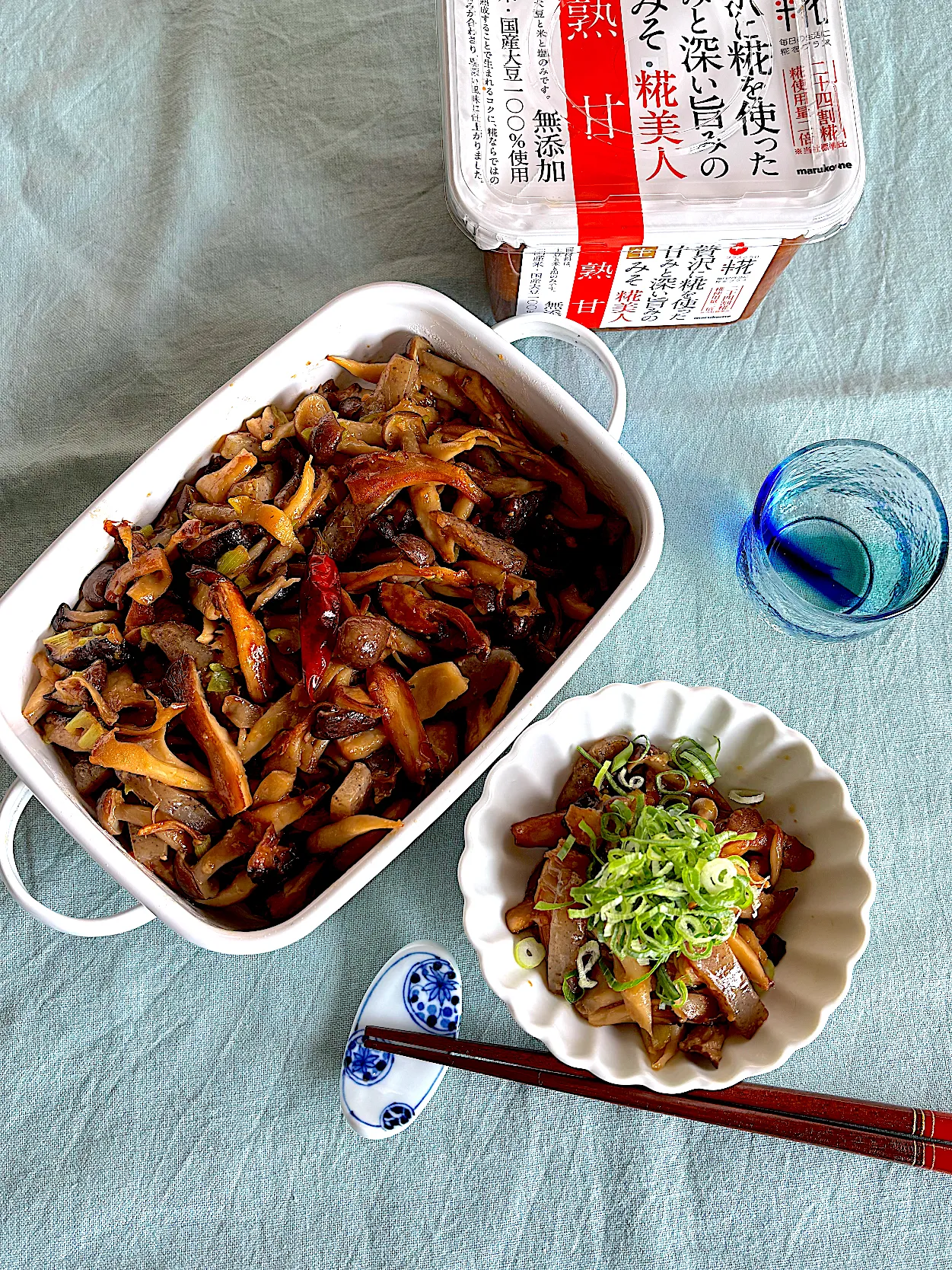 きのこの香りが立ってきたらネギ味噌を回しかけて軽く炒めて出来上がり😊