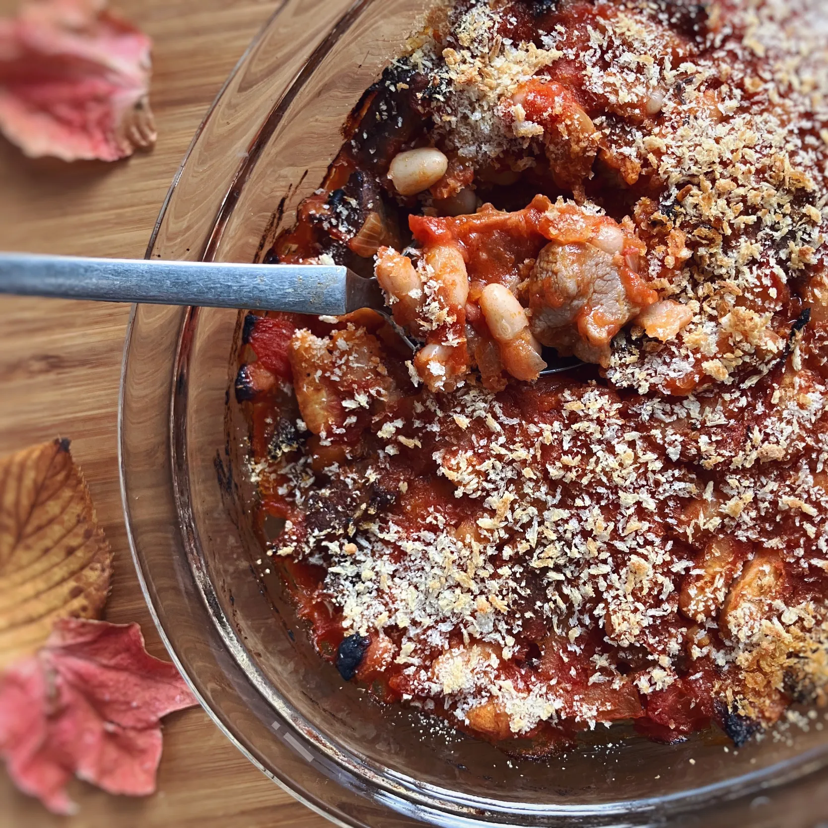 フライパンで軽く煮込んだ後、オーブンで仕上げました