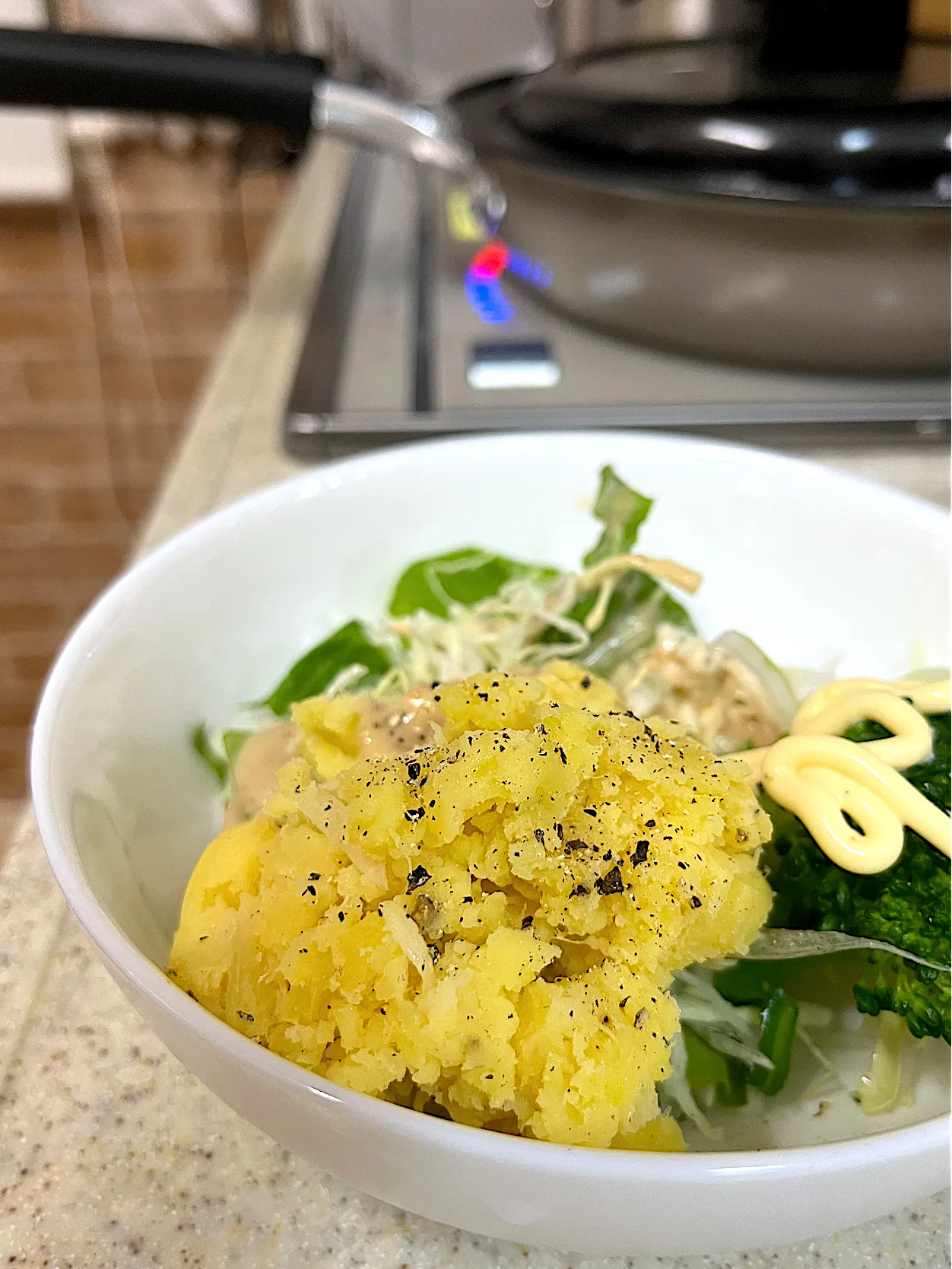 朝オーブンで焼いたさつまいもをサラダにしました。