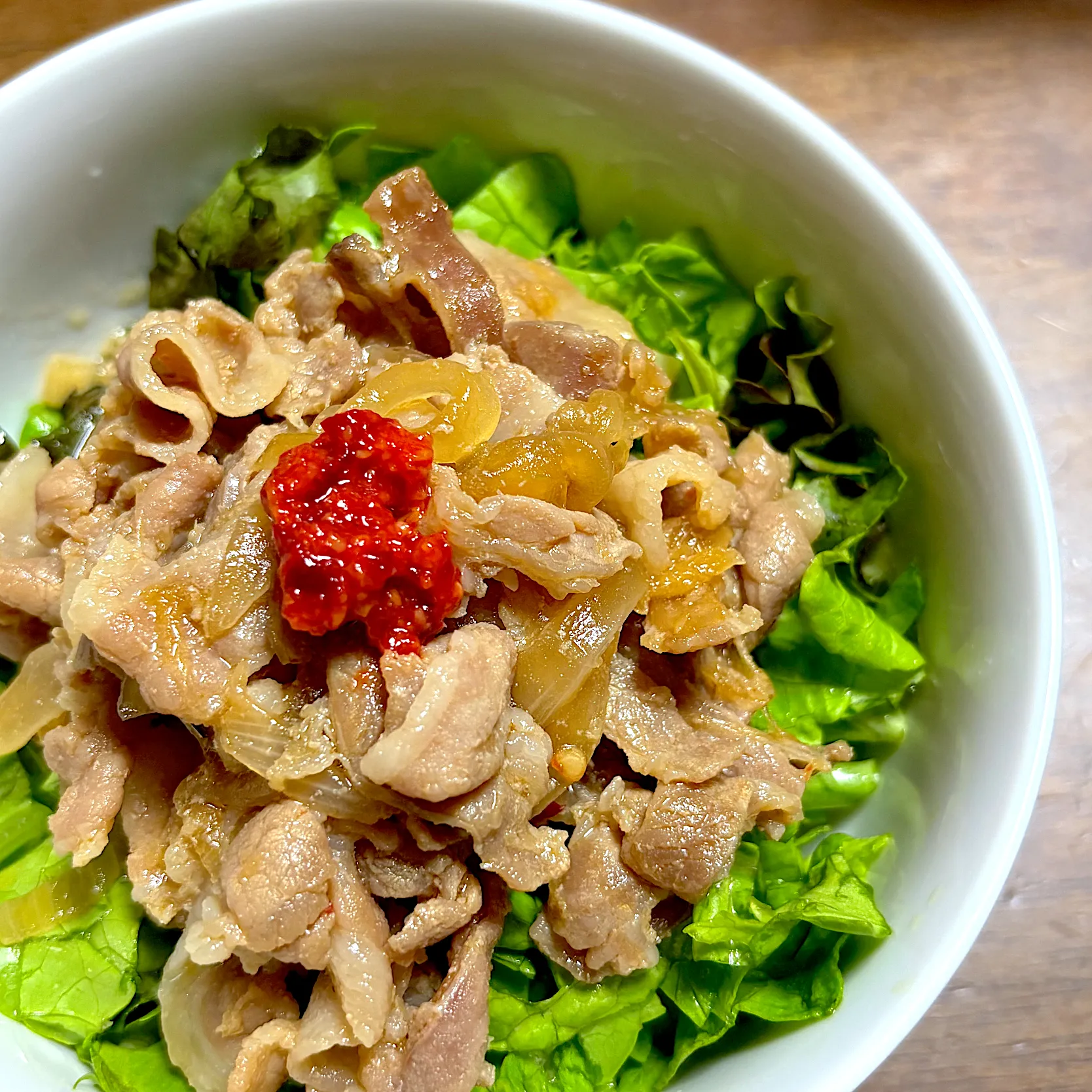 どんぶりに適当にカットしたレタスを敷き、④を盛り付ける