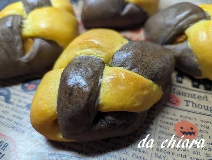 #バイカラー かぼちゃパン #かぼちゃ #ハロウィン #ブラックココア #かぼちゃパウダー