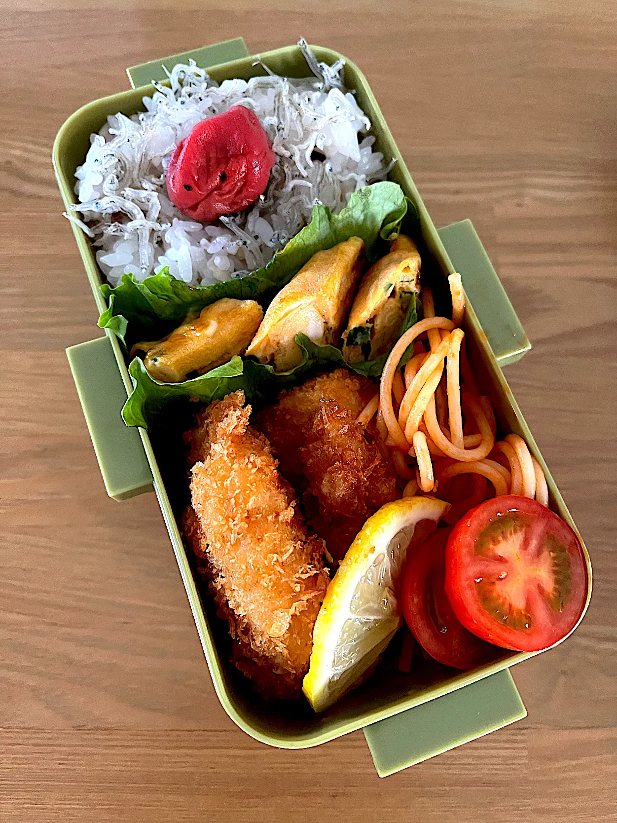 #ささみフライ #卵焼き #ケチャップスパゲティ #じゃこご飯