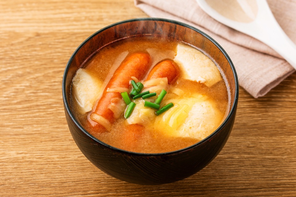 つぶみそとコチュジャンで作る旨辛スープにたっぷり豆腐とパワ辛シャウエッセン!