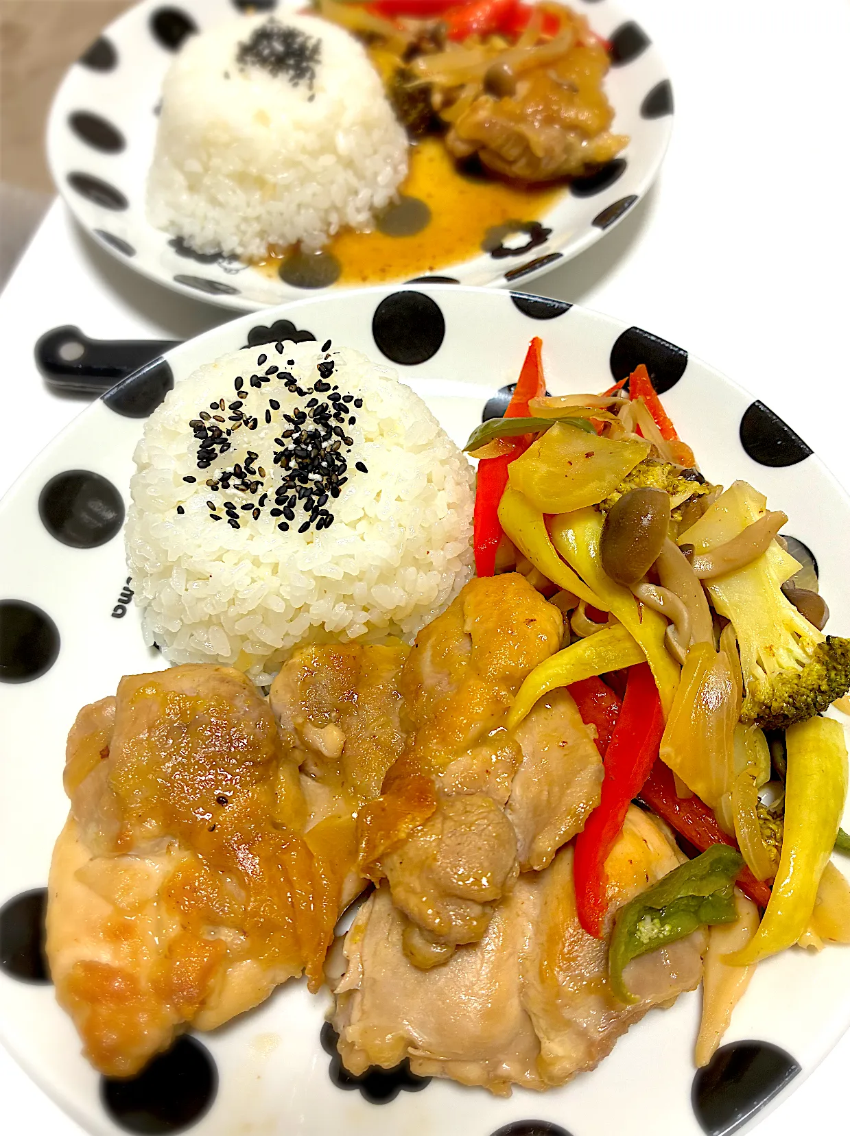 #鶏肉のビネガー煮 #穀物酢 #鶏モモ肉 #玉ねぎ #ピーマン #しめじ