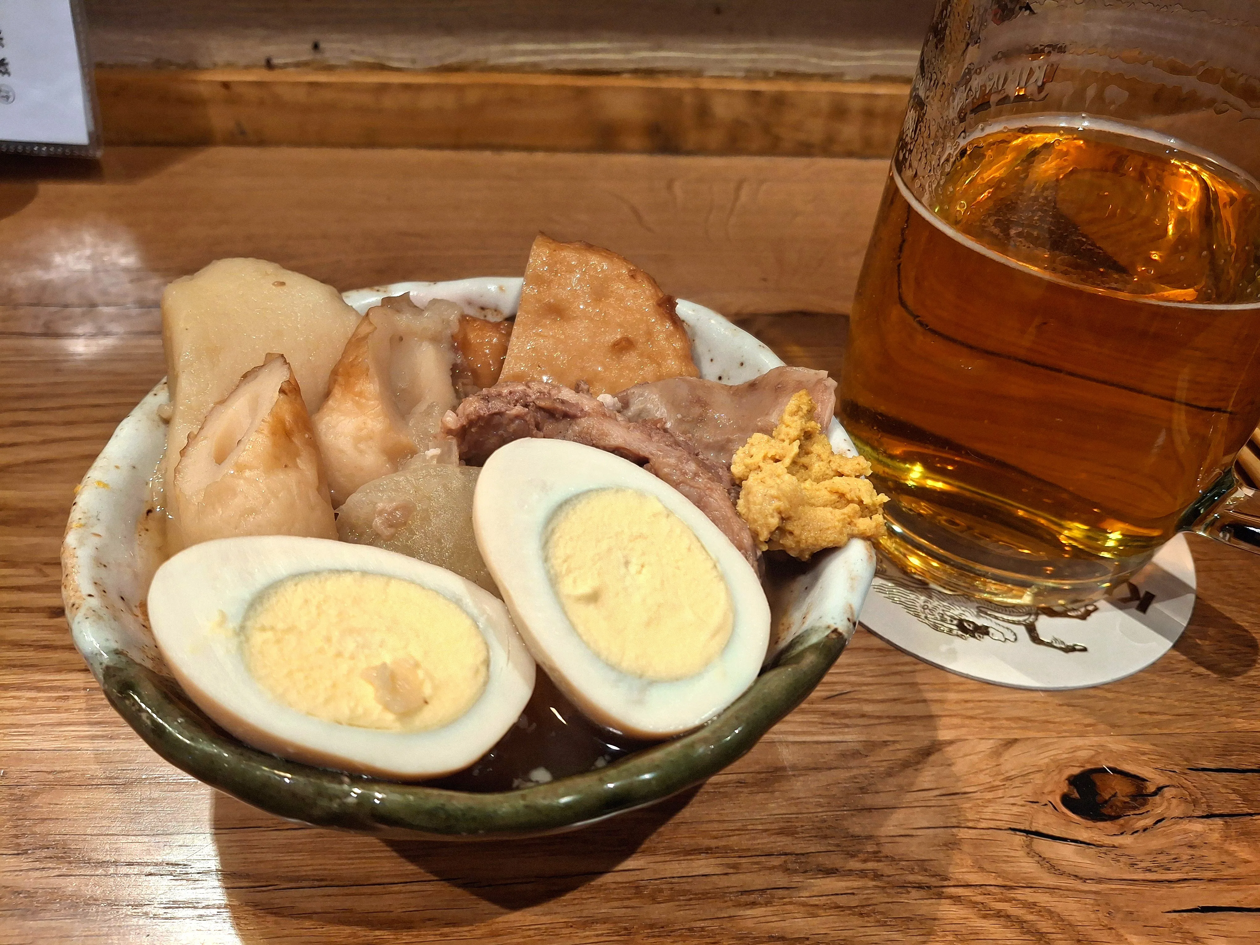 初雪で激寒なのでNumataでおでん🍢とビール🍺! 刺し身に串焼き、日本酒🍶。デュッセルドルフはLittle Tokyoと言われる日本人街があるのです。