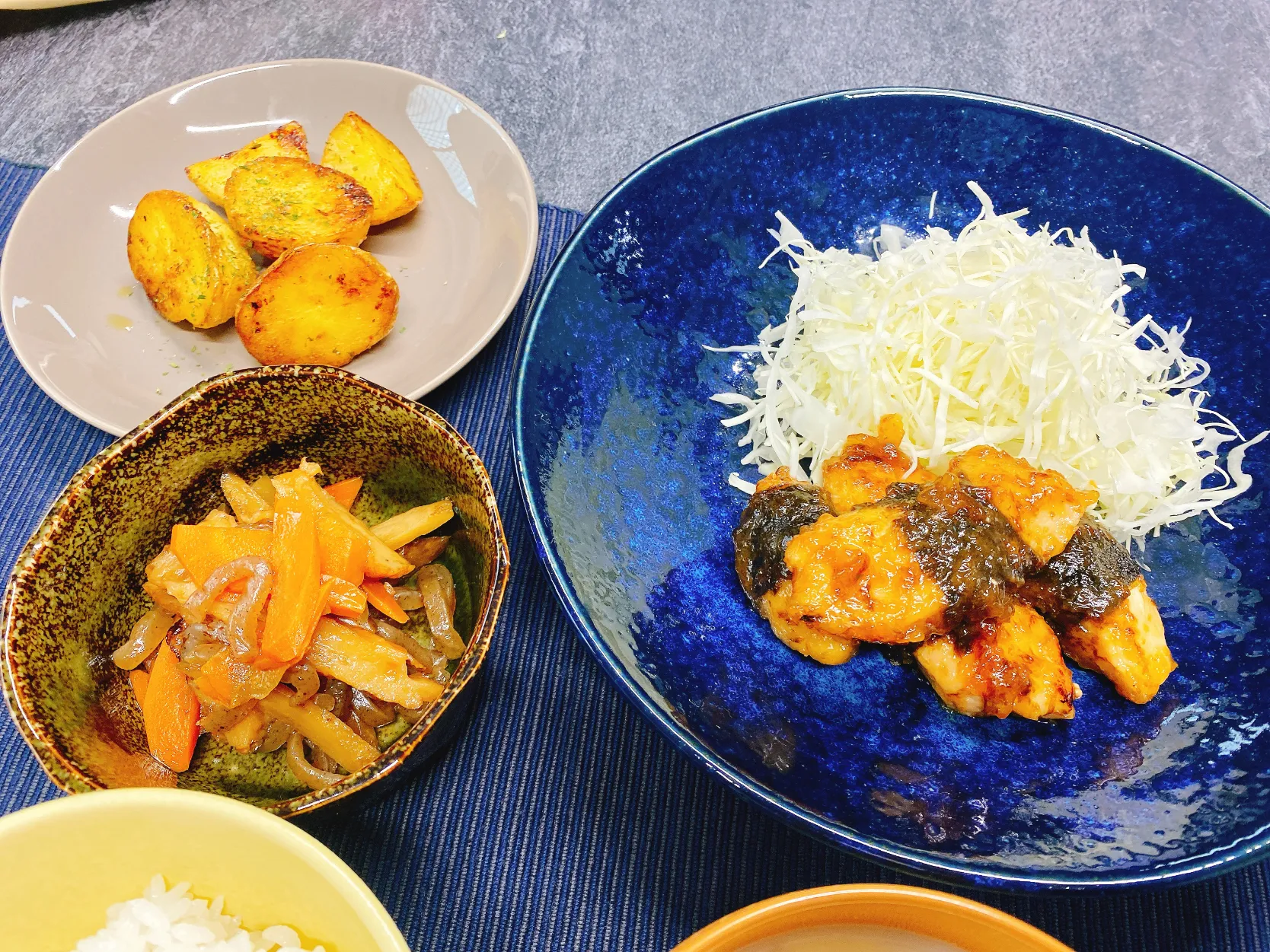 #社員食堂 #こんにゃくさつま揚げきんぴら #小芋ペペロン #豆乳スープ