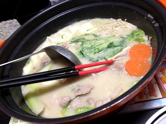 晩御飯はパパ飯٩( ᐛ )و☆ごま豆乳鍋〆は☆チーズ...