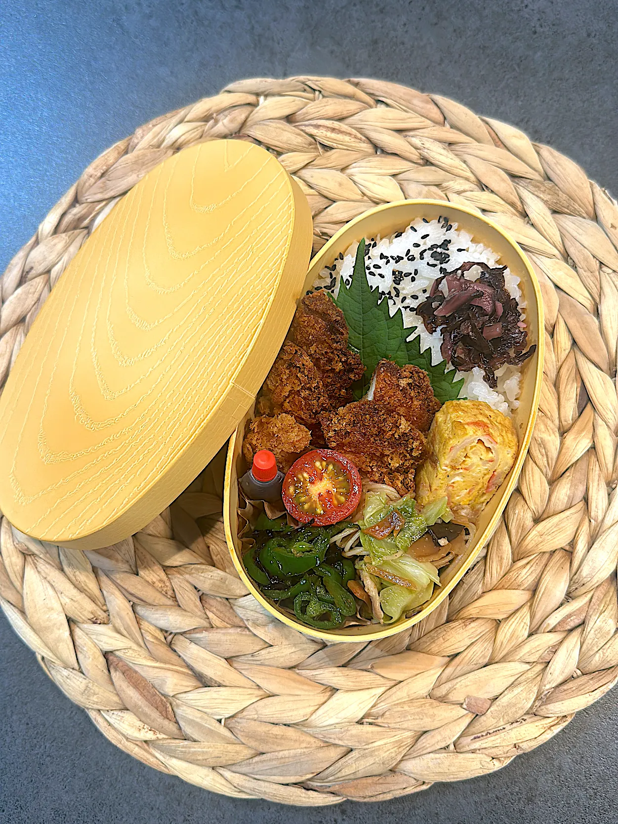#女子高校生弁当 #わっぱ弁当 #お弁当 #夕飯の残り物 #ミニトマト #卵焼き #トンカツ #エビフライ #ビーフン #ピーマン