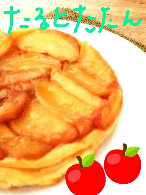 フライパンでタルトタタン。りんご二個をくし切り。無塩バターと砂糖30gで水分を飛ばしながら炒める。炒めたらパイ生地を被せて、オーブン180℃で30分焼く。パコっと潔くひっくり返す(笑)気軽にアバウトに。アメリカのママが急に焼いたイメージで。愛のある味だよ