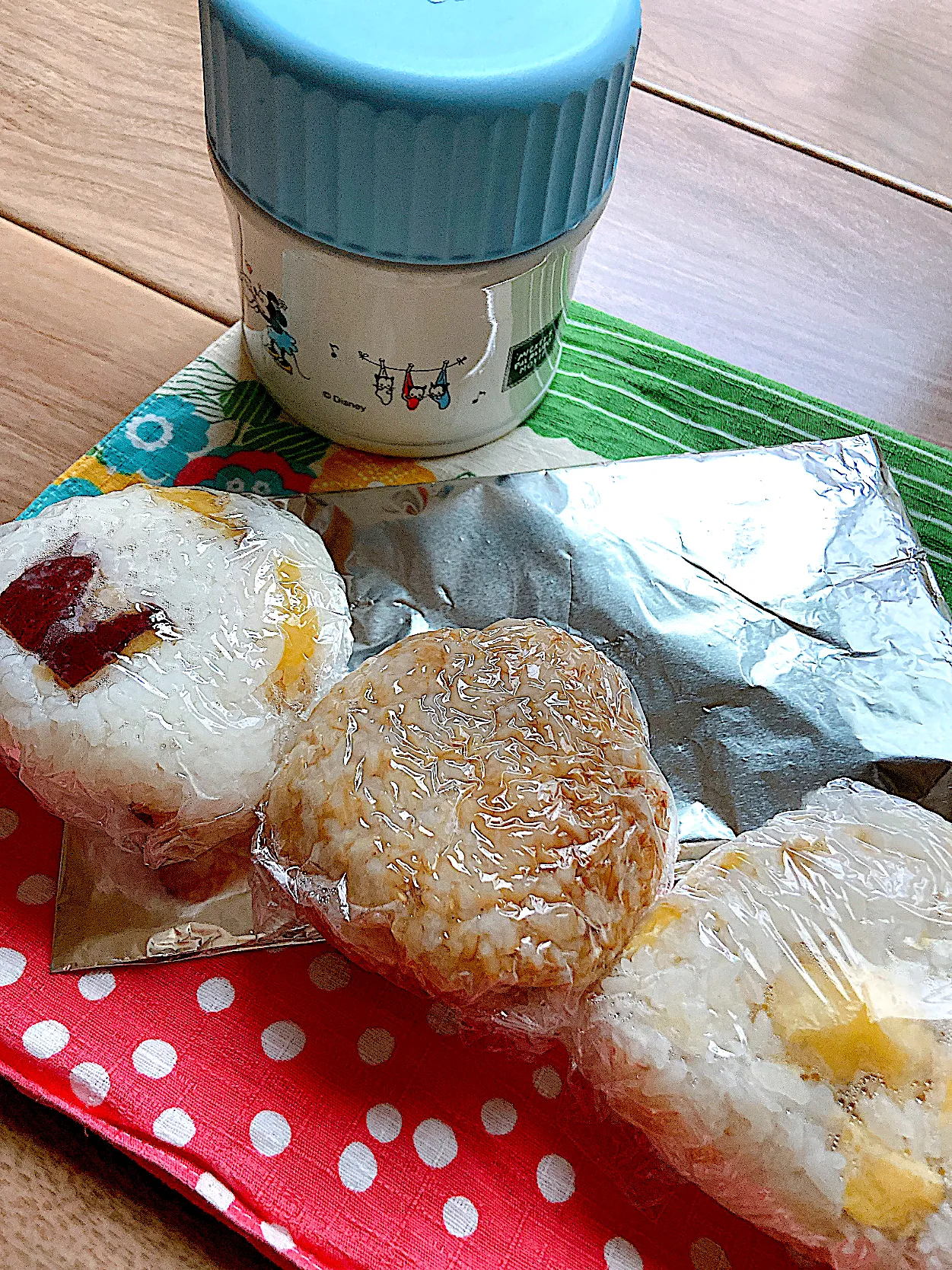 真ん中のおにぎりは、玄米に梅干し入り
