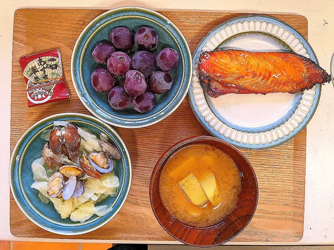 干しカレイ、焼き明太子、卵焼き、しめ...