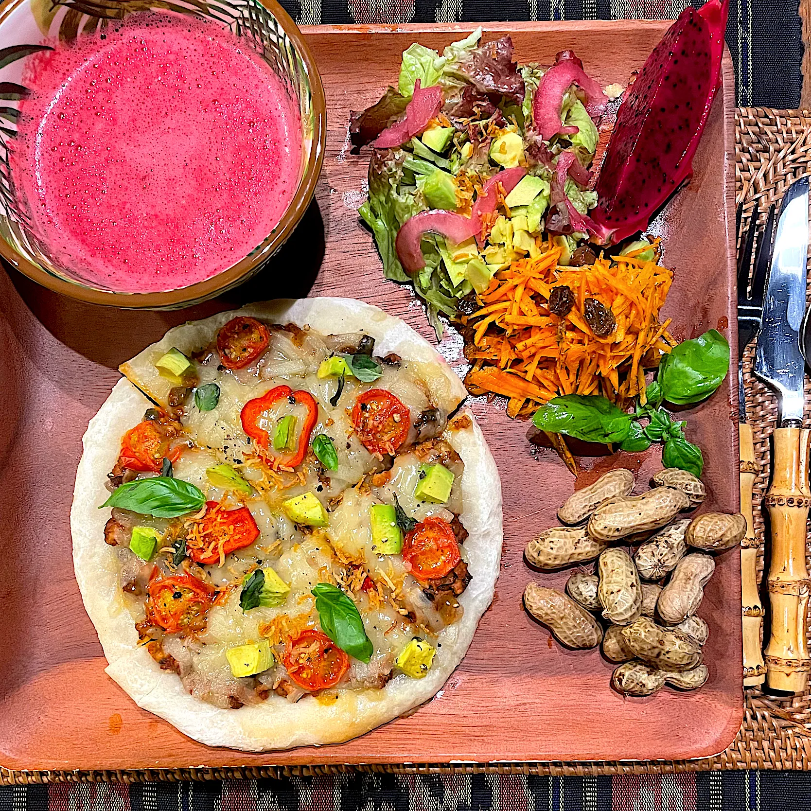 #ピザ # #野菜スープ #ビーツスープ #キャロットラペ #豆乳 #野菜料理 #茹でピーナッツ